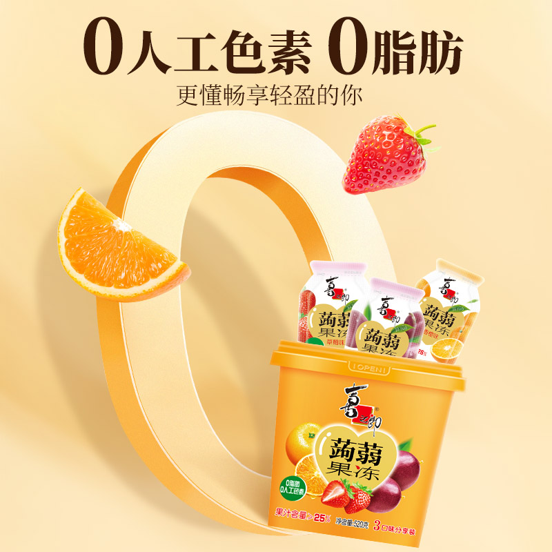 商品介绍:喜之郎0脂肪蒟蒻果冻520g*2桶52包多口味