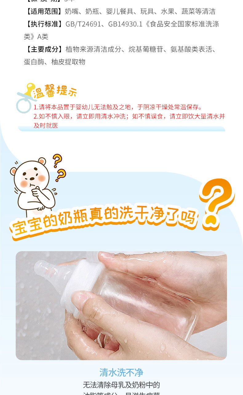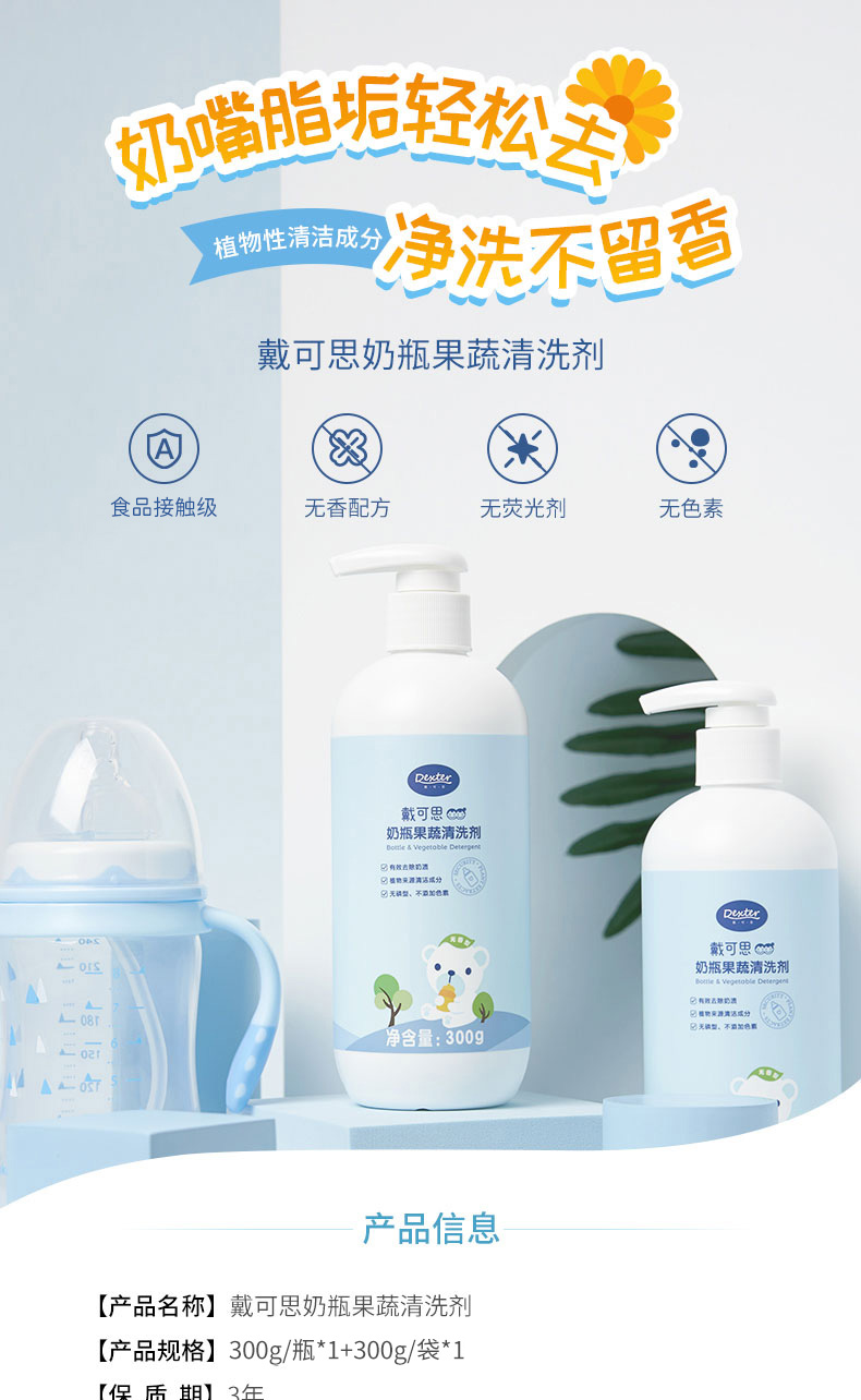 商品介绍:戴可思奶瓶清洗剂婴儿专用1瓶+1袋清洁剂