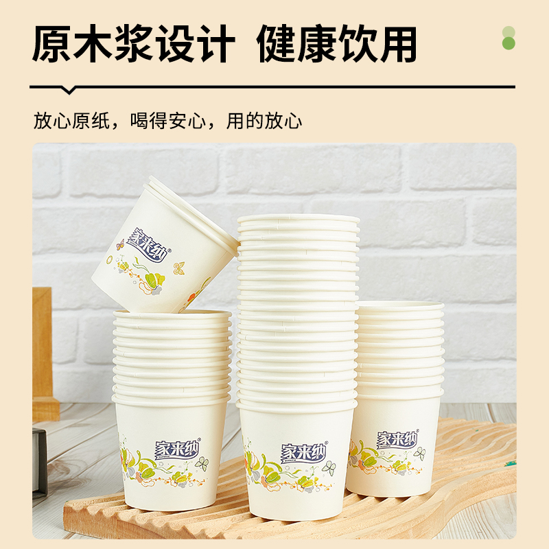 商品简介:拍2件!200只!恒安集团旗下家来纳一次性杯!竹木混浆纸杯,杯身挺括,不变形。PE淋膜,不渗漏,承受力强,时尚印花,品牌的靠谱,纸杯千万别买杂牌!!