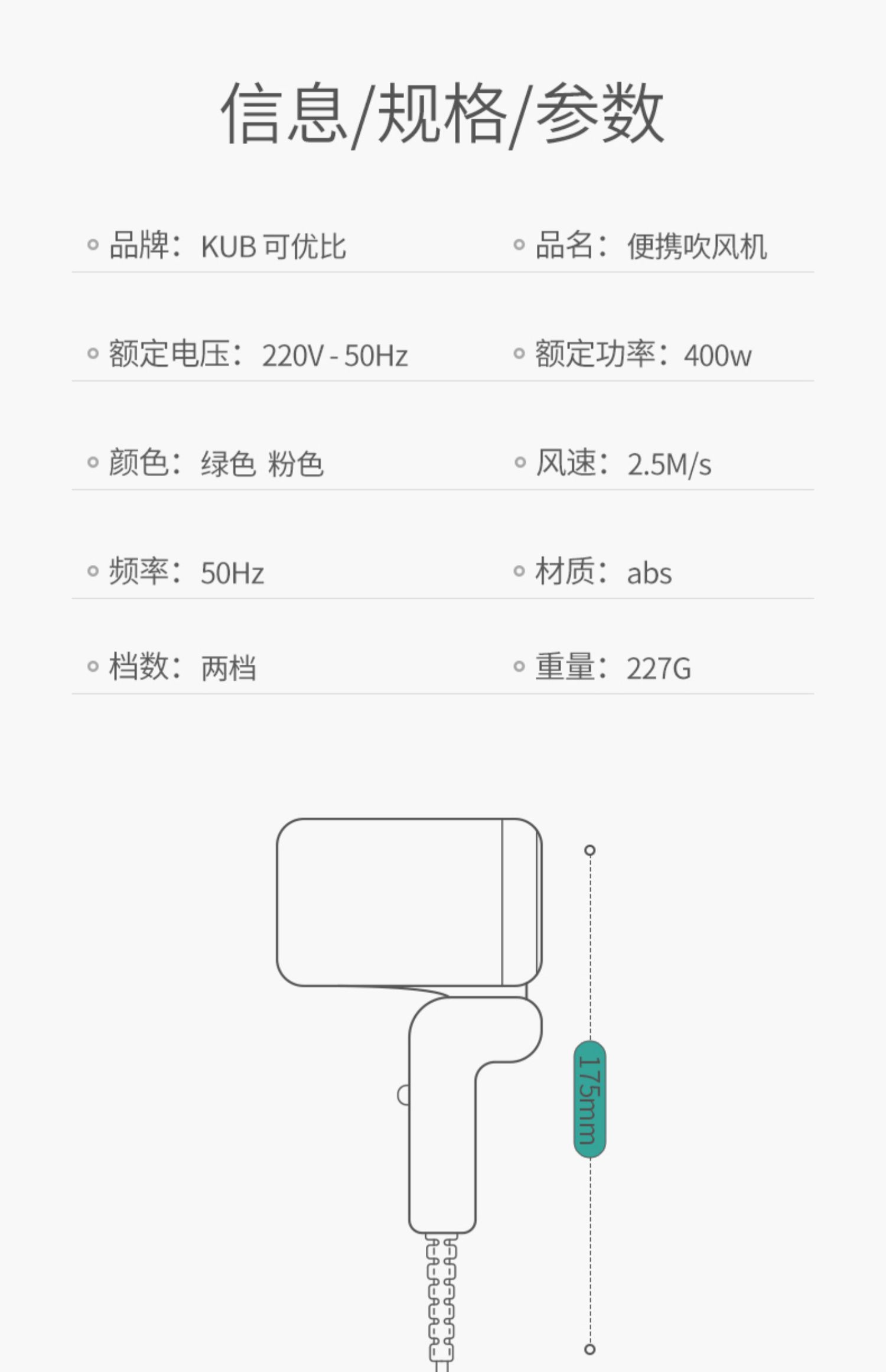 商品介绍:KUB可优比儿童吹风机新生宝宝儿童专用
