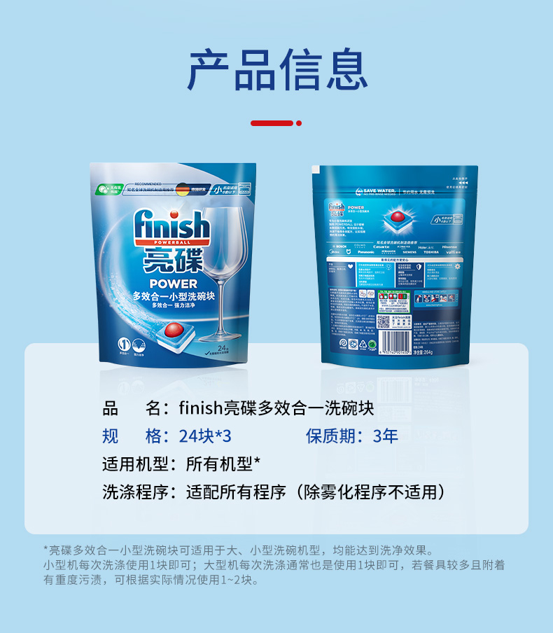 商品名称:finish亮碟多效合一全机型通用洗碗块264*3组合装抑菌264g*3袋