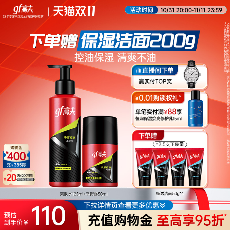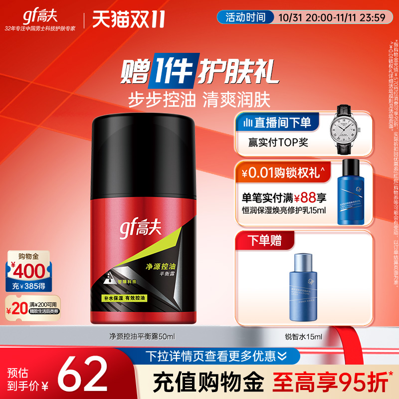 商品名称:【双11抢购】高夫男士乳液净源控油平衡露补水保湿乳护肤套组