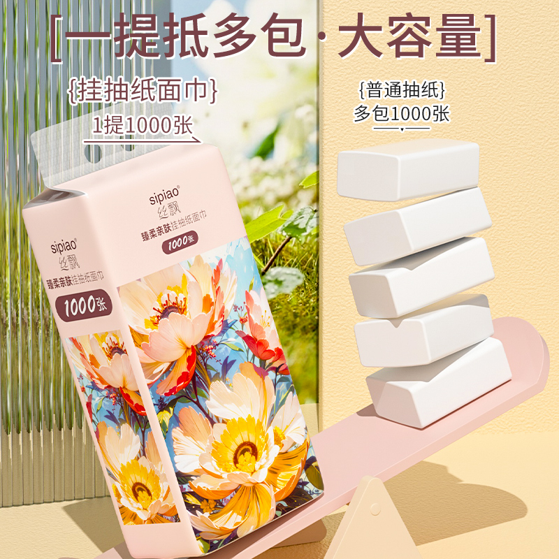 商品名称:丝飘大尺寸悬挂式抽纸家用实惠装餐巾纸面巾纸加量装擦手纸卫生纸