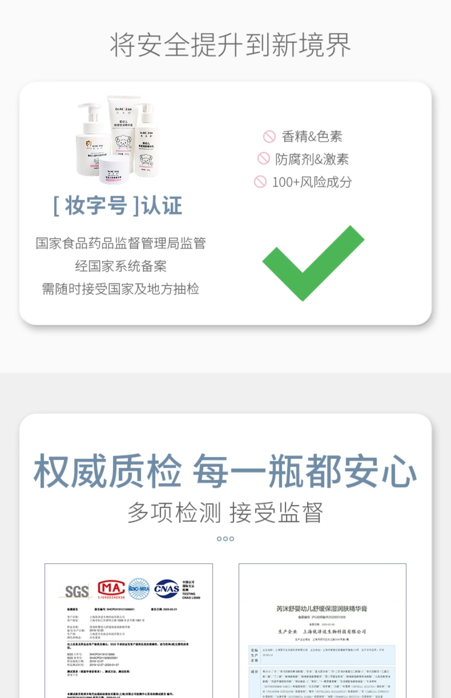 商品简介:凑单到手178.5!新生儿专享!50g精华润护!舒缓红痒,滋润保湿,天然植萃,温和守护。强健宝宝肌肤屏障,告别干燥不适,一抹即安!全家安心之选,爱从呵护开始!