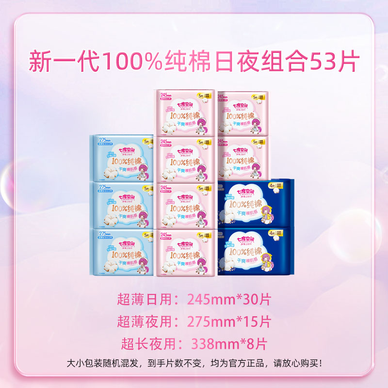 商品介绍:七度空间日夜用卫生巾组合套装53片
