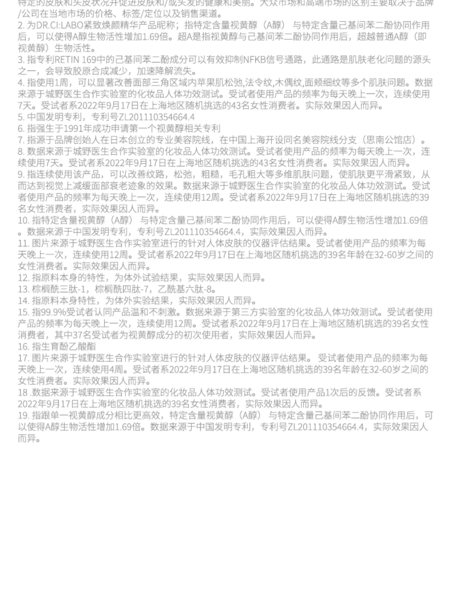 商品名称:城野医生169A醇抗老精华超A提拉紧致抗皱面部精华液温和淡化