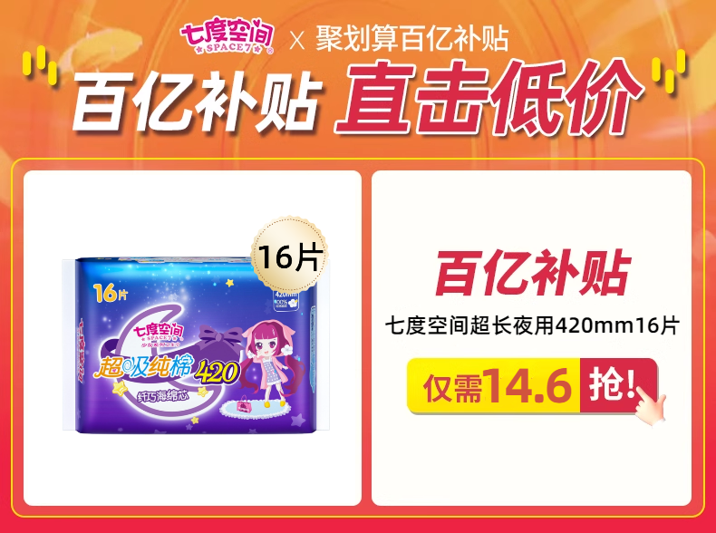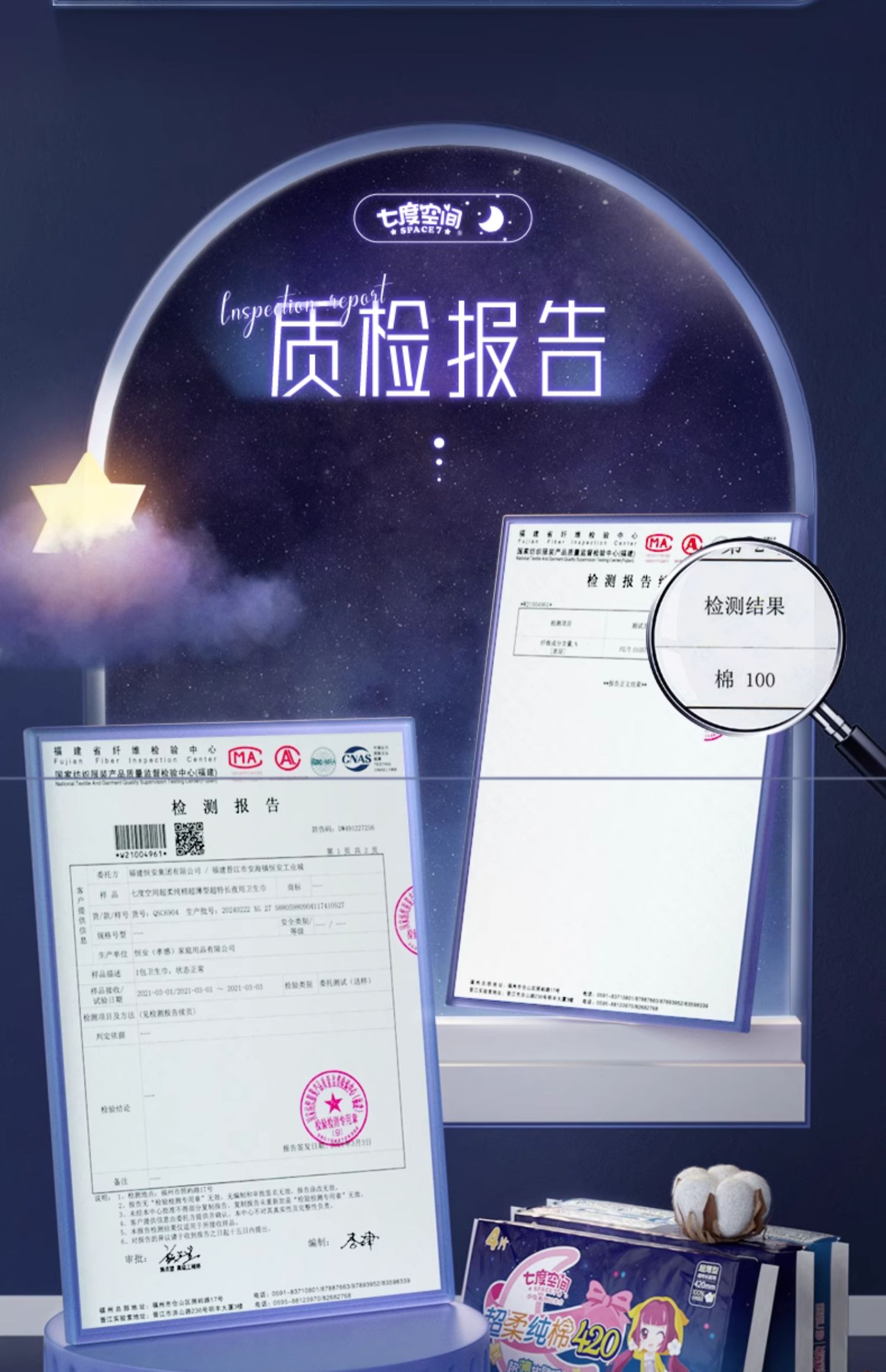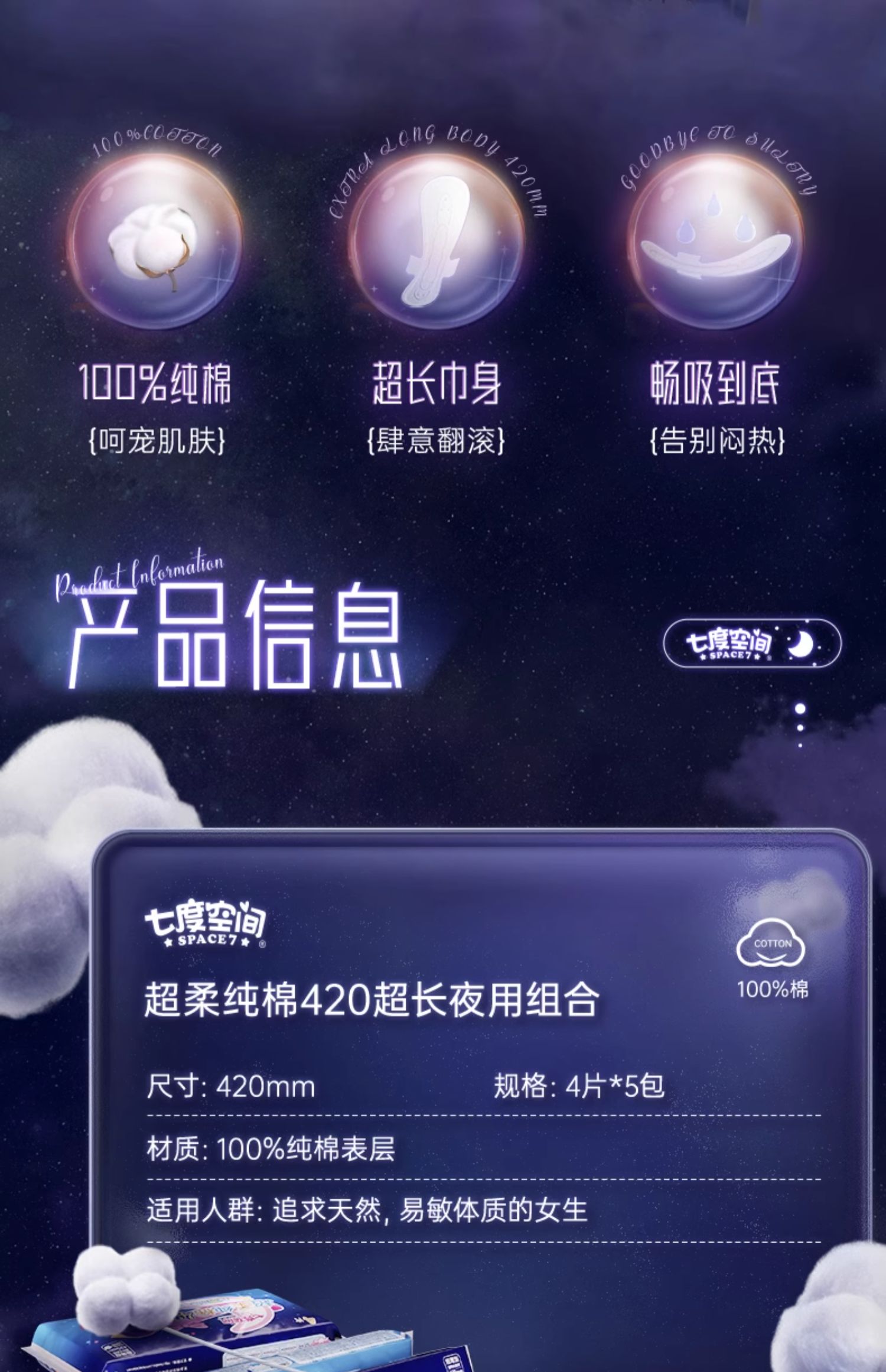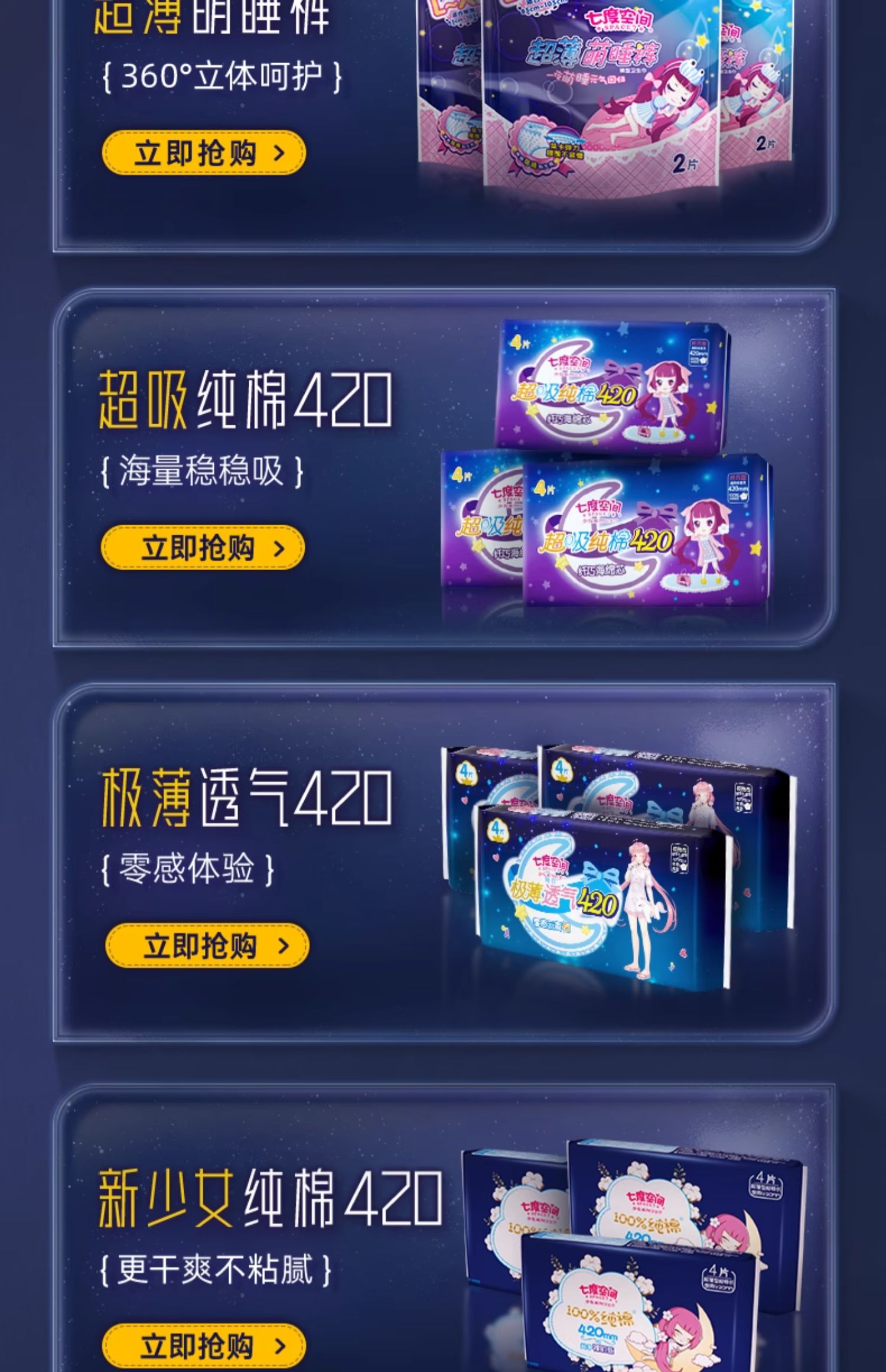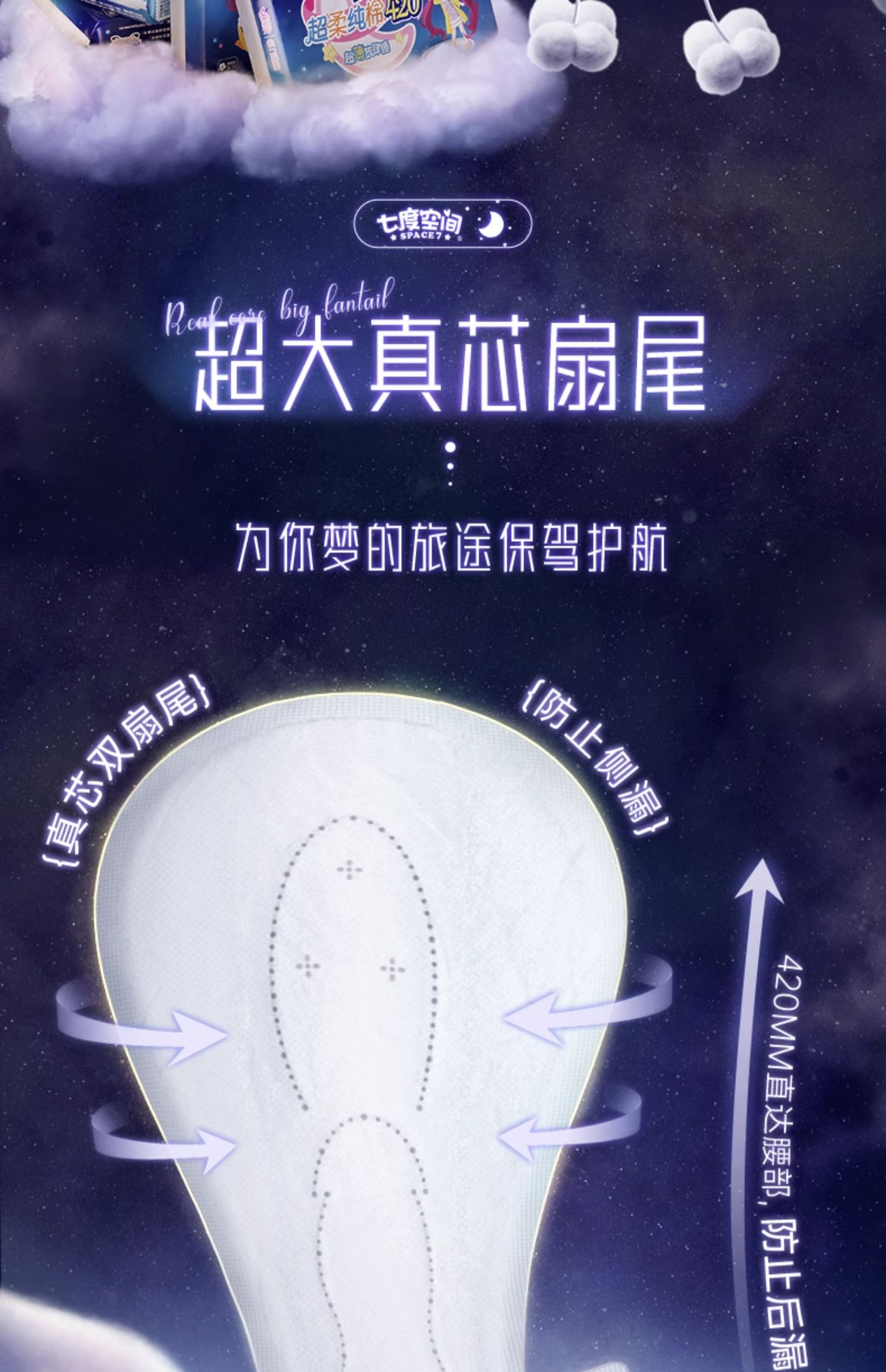 商品名称:七度空间少女420mm16片卫生巾超长夜用透气姨妈巾纯棉官方正品