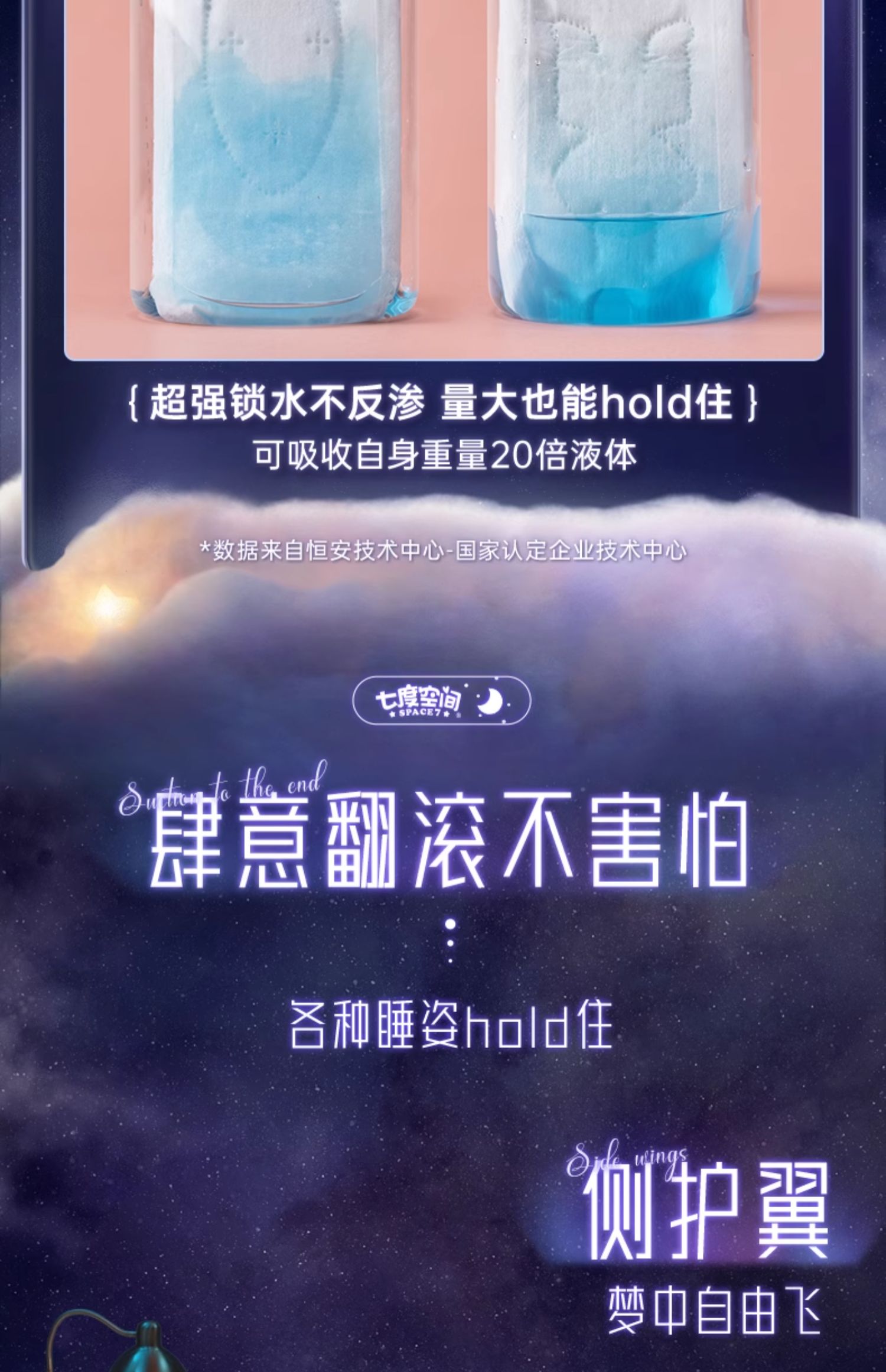 商品简介:限时加赠!【百补15.1】七度空间卫生巾,超长夜用加长,姨妈巾防漏透气安心,海量瞬吸,防侧漏不反渗,舒适舒爽每一天!