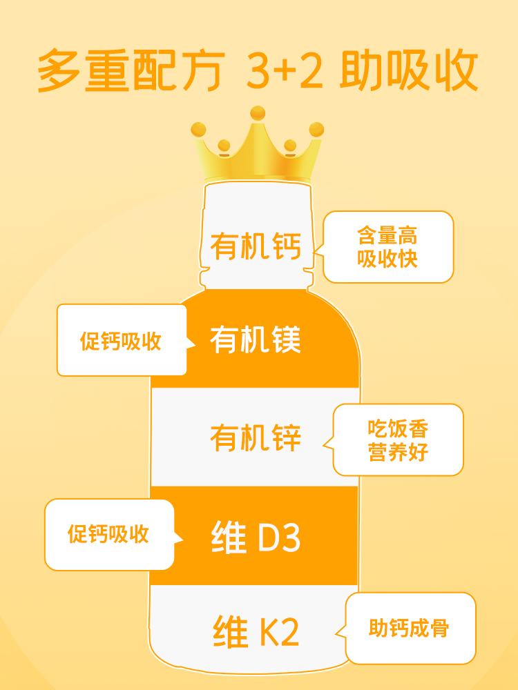 商品介绍:【2瓶装】童年时光宝宝营养液体钙镁锌