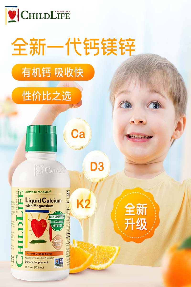 商品名称:【自营】童年时光ChildLife大白瓶液体钙镁锌*2