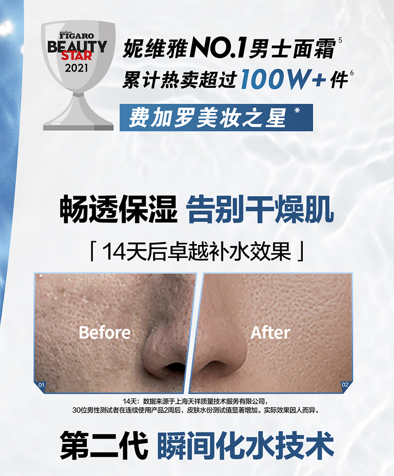 商品介绍:妮维雅男士水活畅透精华露小蓝管乳液