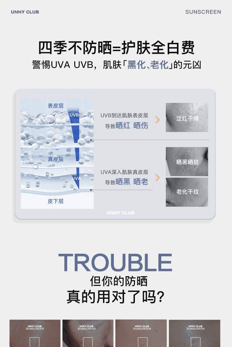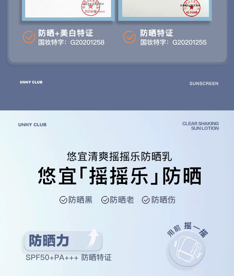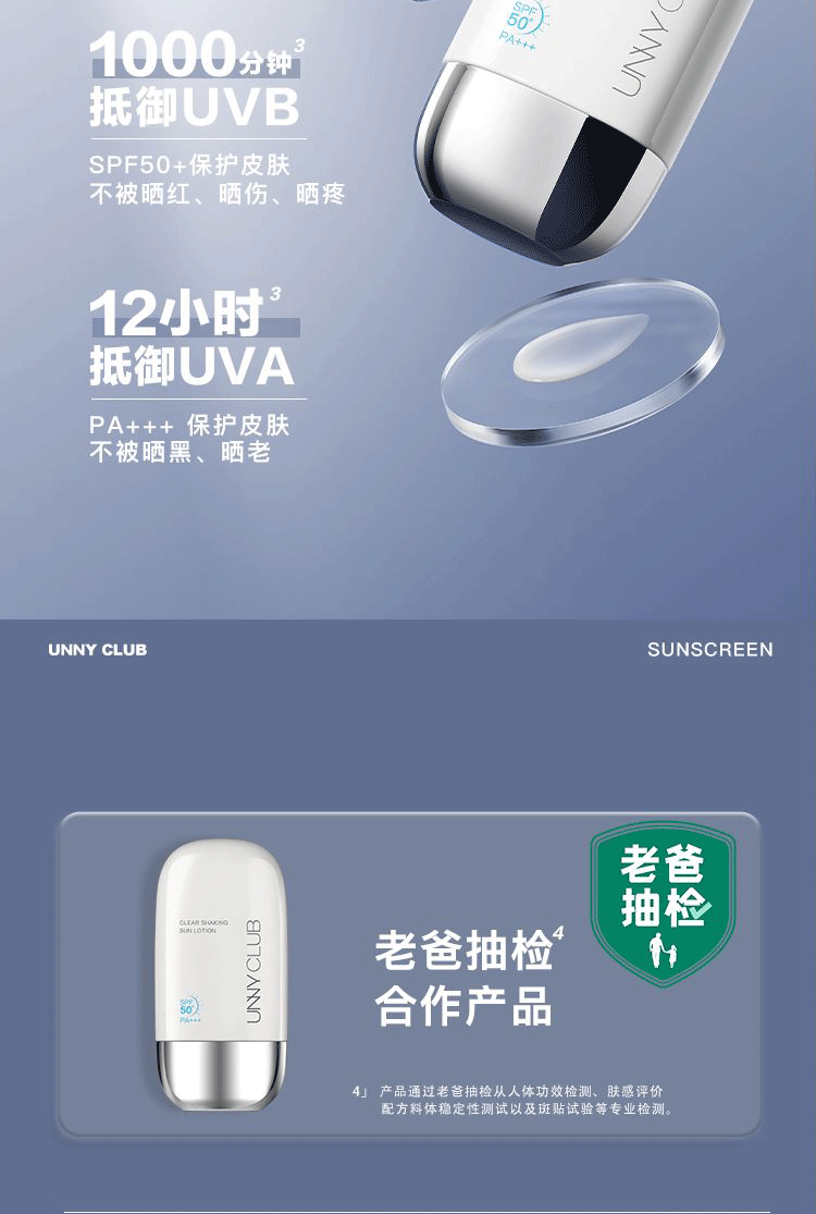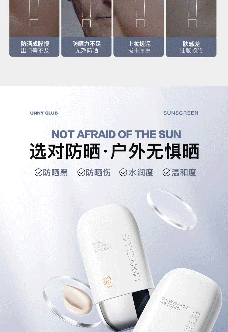 商品名称:unny club防晒霜乳男女面部全身体清爽美白隔离50ml户外防紫外线