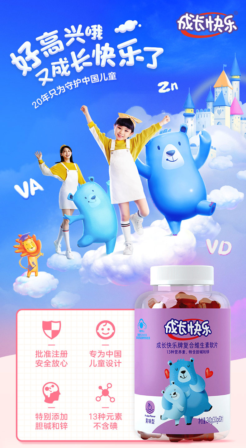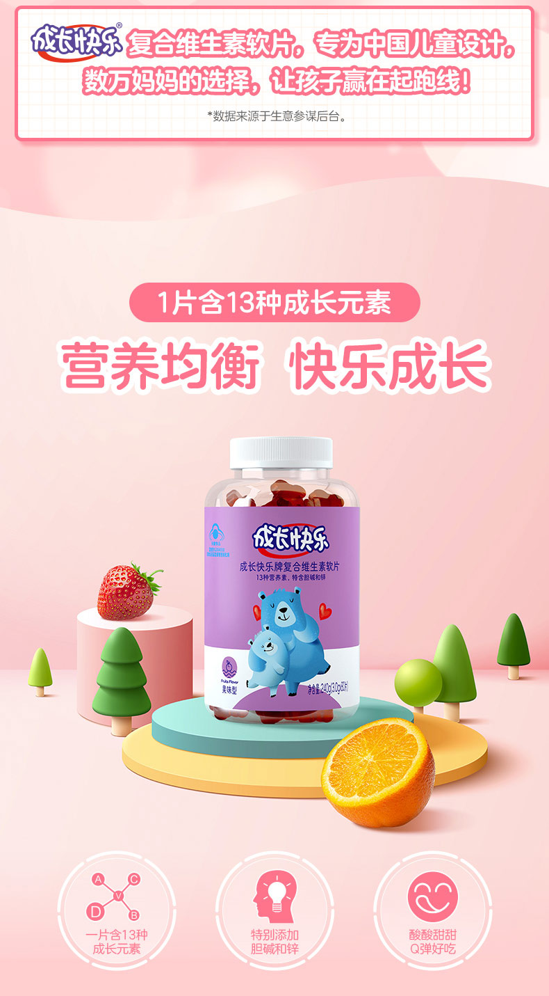 商品介绍:凑单56!堂成长快乐复合多种维200片