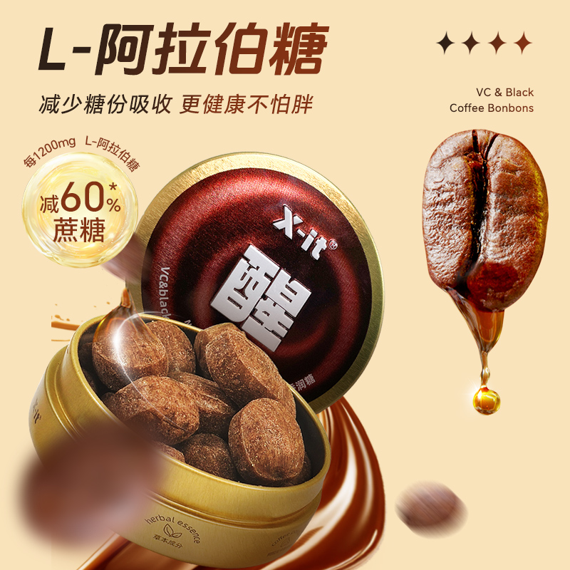 商品名称:xit冰咖啡糖丝滑醇香润糖开车加班犯困提神清凉VC润喉糖硬糖零食