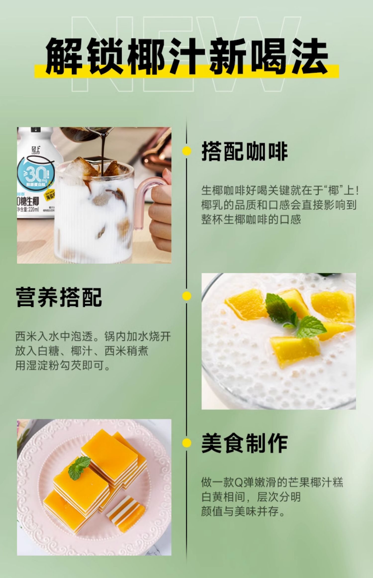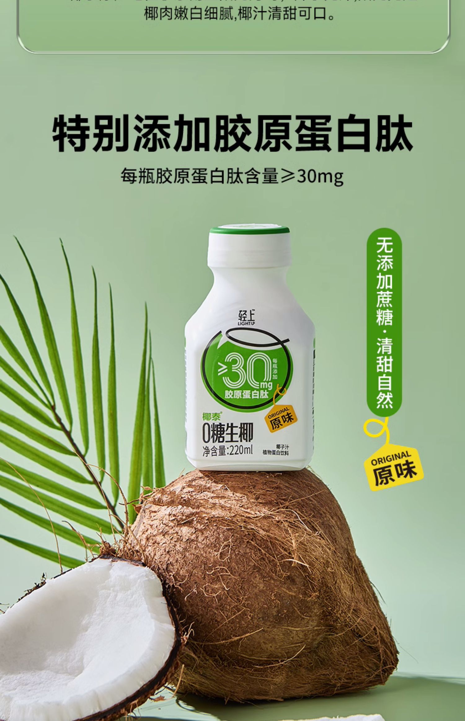 商品介绍:轻上 生椰椰子汁鲜榨椰汁椰奶0添加蔗糖