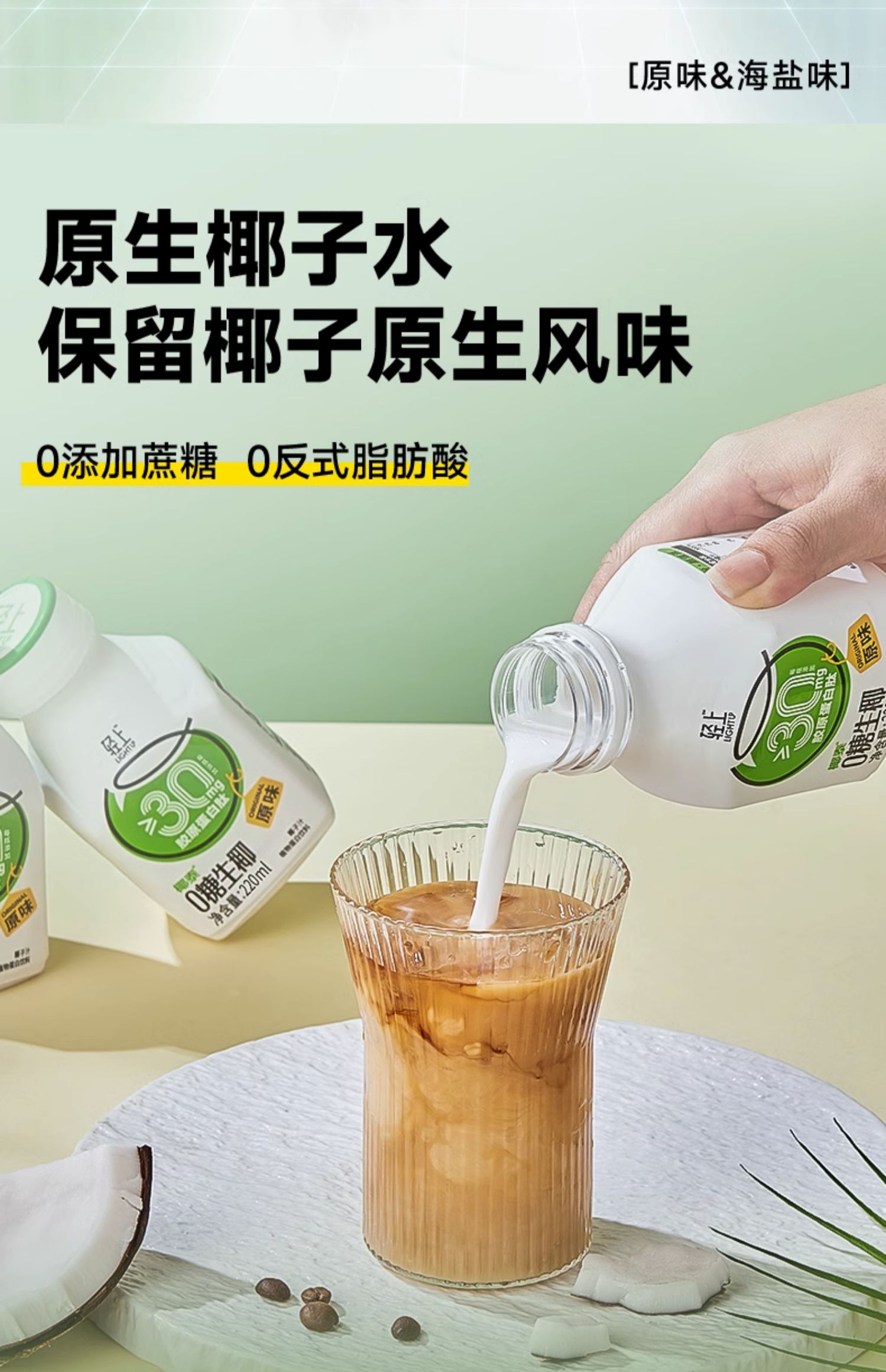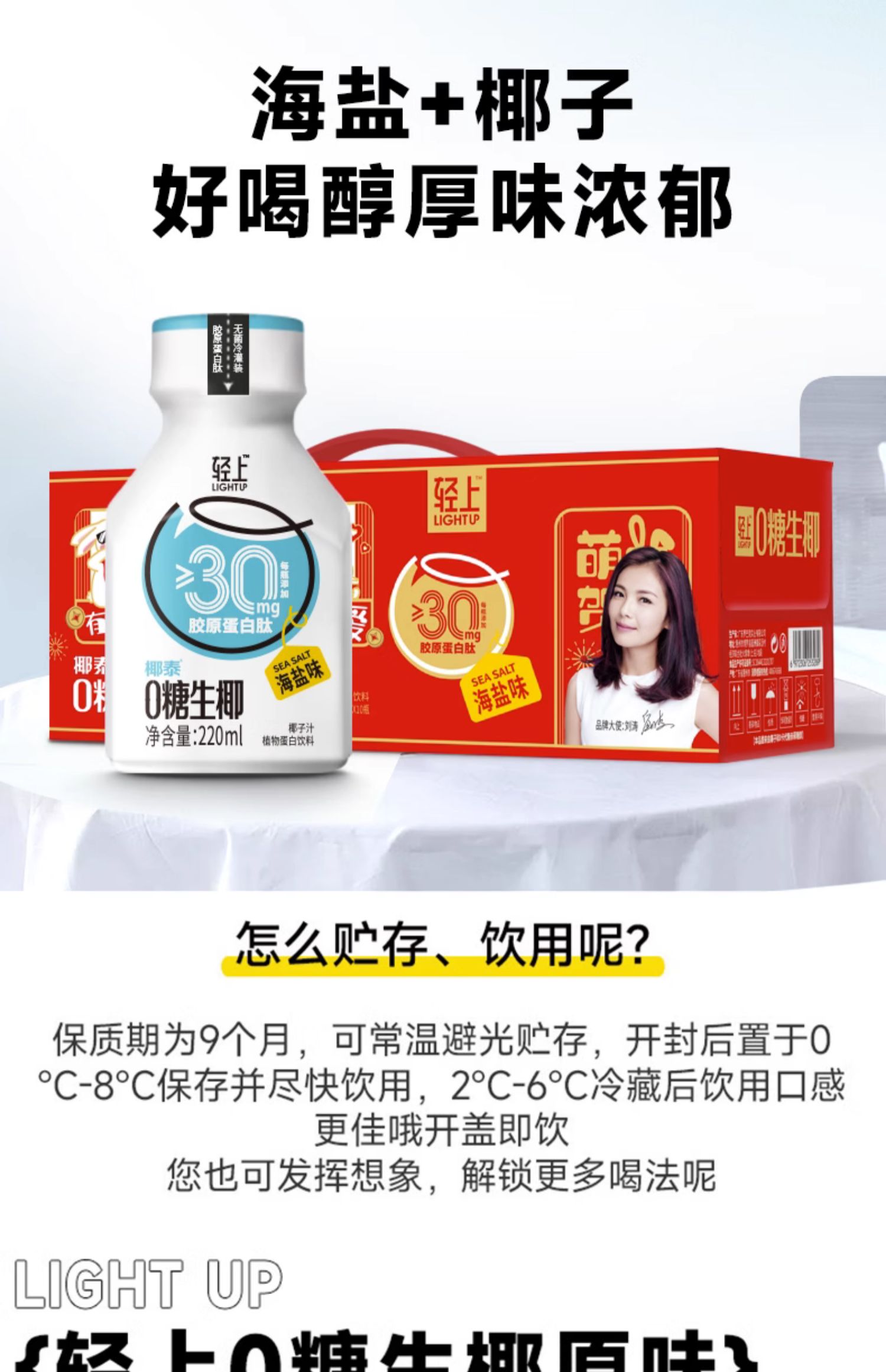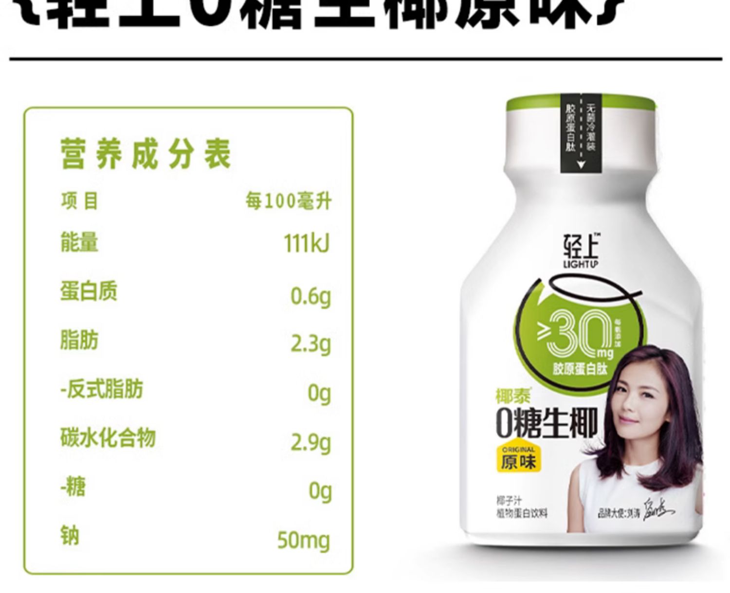 商品简介:【参与每300减50】蓉妈同款!轻上无糖生榨0添加蔗糖椰子汁10瓶,口味不受限满足您“不同”的味,原生椰子水保留椰子原生风味,0添加蔗糖0反式脂肪酸~健康又好喝!