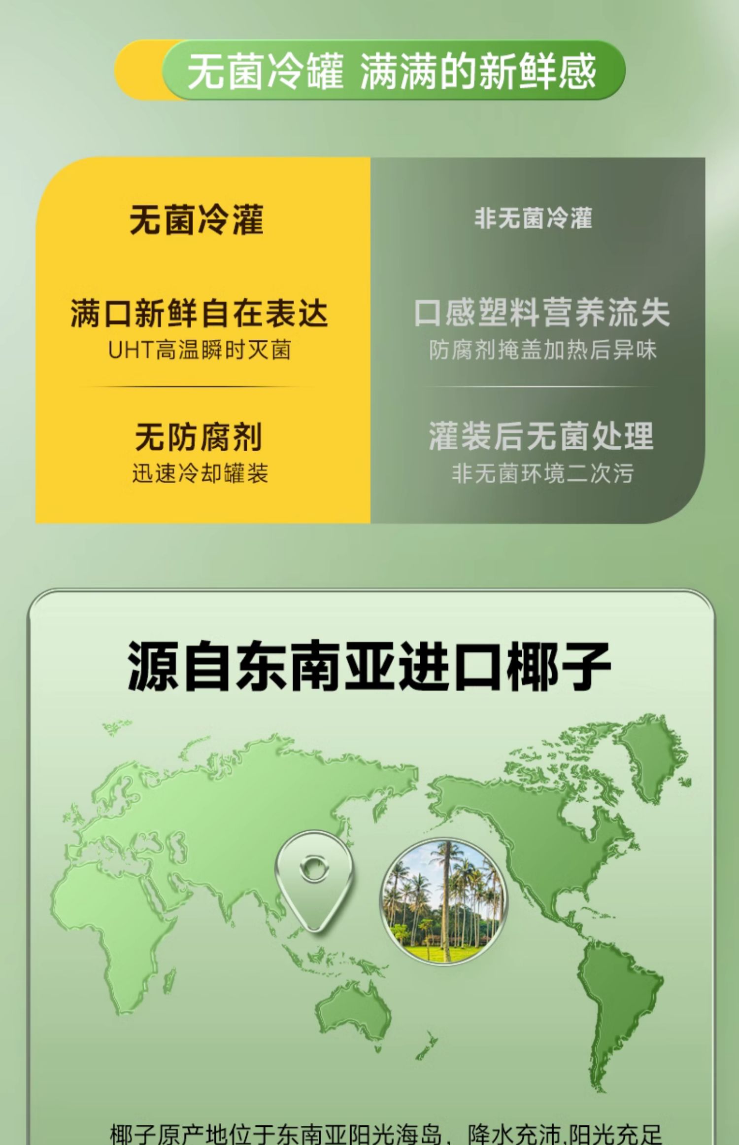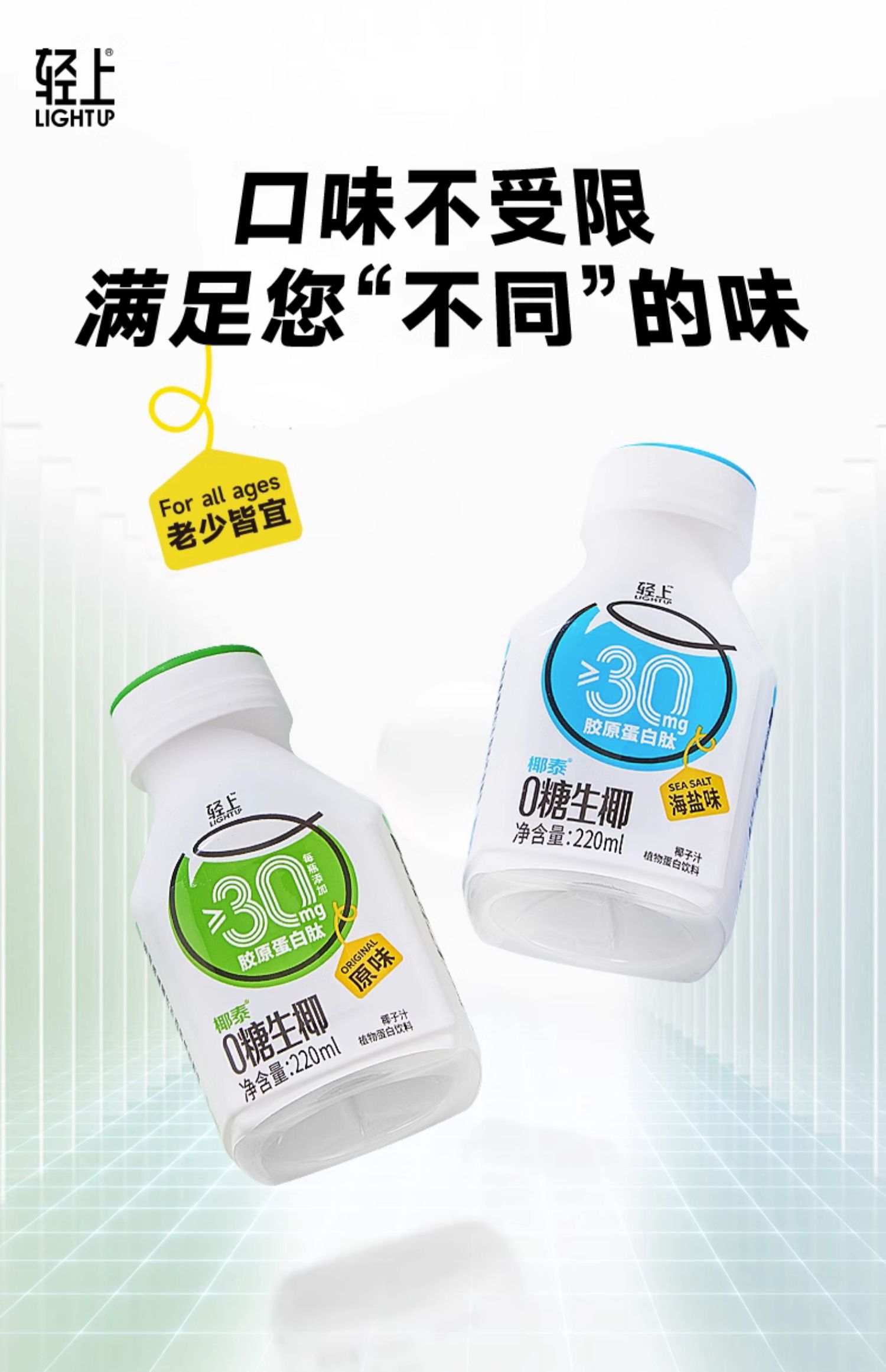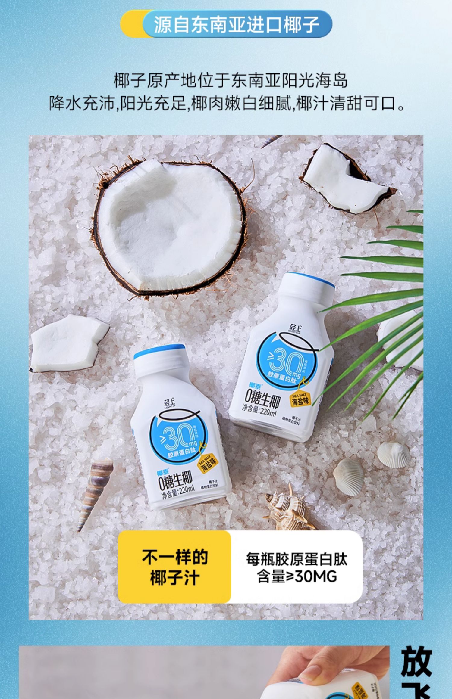 商品简介:【参与每300减50】蓉妈同款!轻上无糖生榨0添加蔗糖椰子汁10瓶,口味不受限满足您“不同”的味,原生椰子水保留椰子原生风味,0添加蔗糖0反式脂肪酸~健康又好喝!