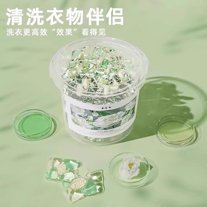 商品名称:山茶花洗衣凝珠桶装五合一持久留香柔顺洗衣球强力去污浓缩洗衣液