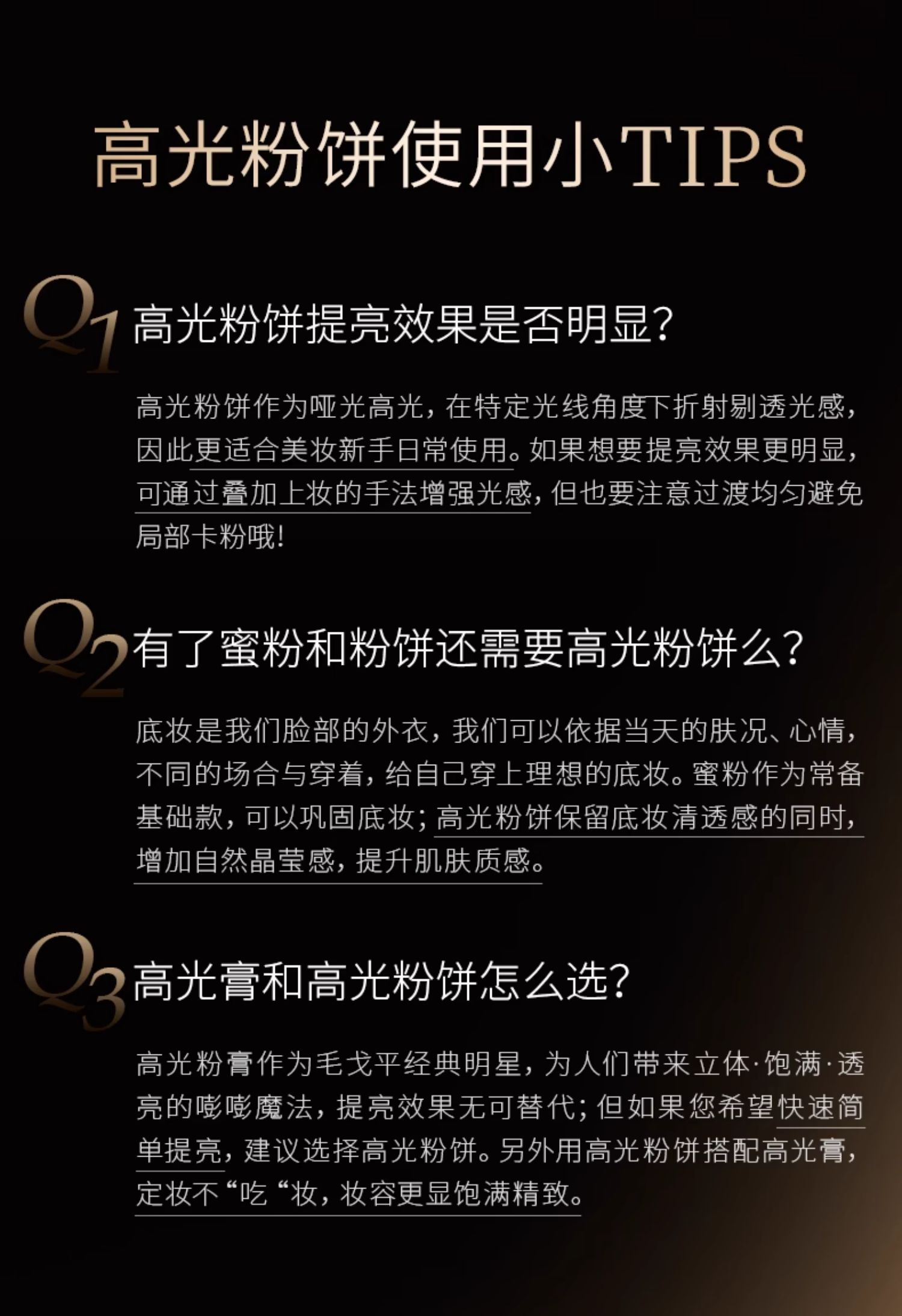 商品简介:叠加300-50【赠便携海绵+入会赠水奶油粉底液Iml+养肤黑霜1g】实力高光,多效合一,便携迷你,随时补妆,告别暗沉烦恼,以光定光,持久持妆,提亮气色,立体轮廓,好用不脏脸,新手也能轻松掌握!