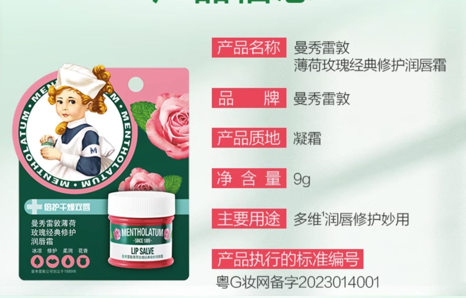商品介绍:曼秀雷敦唇霜薄荷润唇膏9g