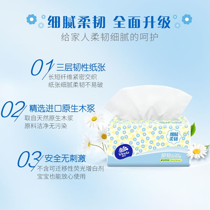 商品介绍:凑单再减9.98!24包!维达抽纸细韧3层100抽