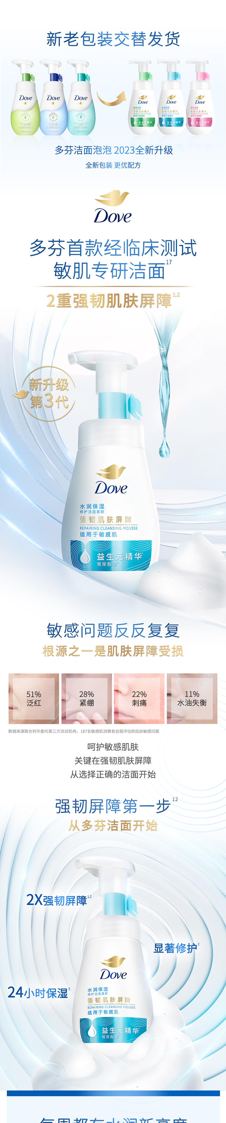 商品介绍:多芬水润修护洁面慕斯洗面奶160ml*2+30g*2