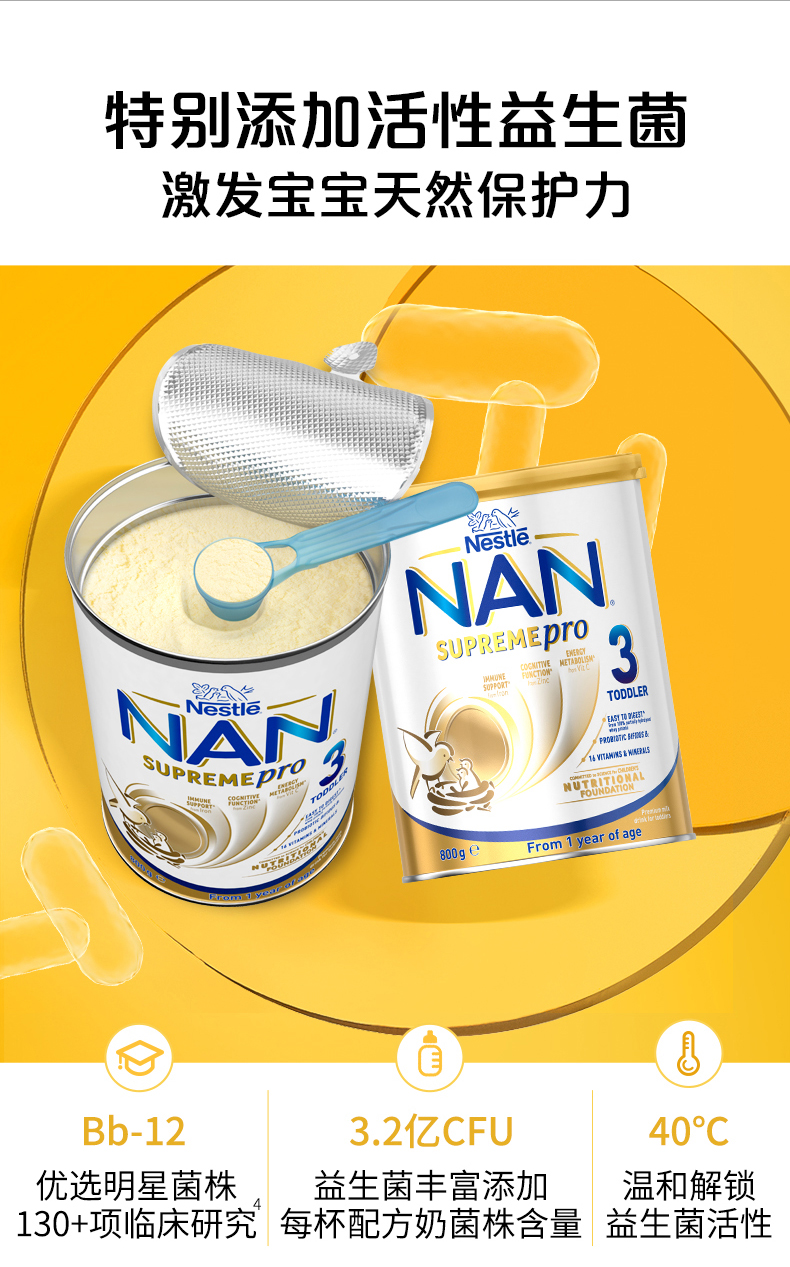 商品简介:【买返25元购物金,忠诚老客券满16减15,每件直降739元,商品券满300减50,88VIP再享95折优惠到手仅需946.2元】澳洲雀巢超级能恩适度水解蛋白益生菌低敏奶粉3段/800g*6,营养丰富,[u1f308]130+项临床研究优选明星菌株;益生菌丰富添加;40℃温和解锁益生菌活性,平衡菌群比例,建立保护屏障:1️⃣形成保护层阻挡有害菌进入体内2️⃣抑制外来菌群增强屏障功能~