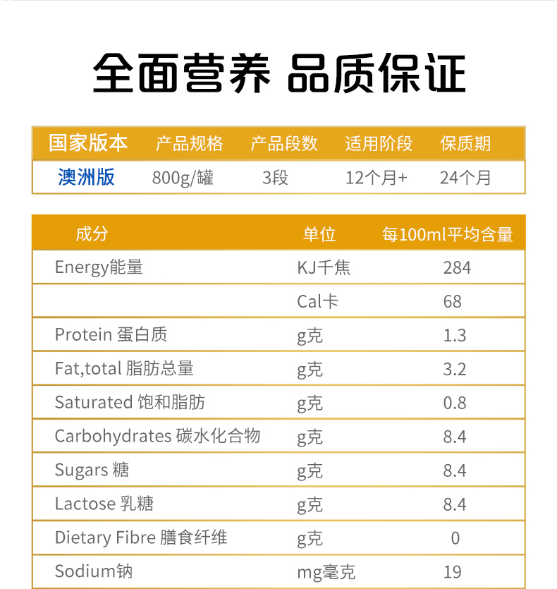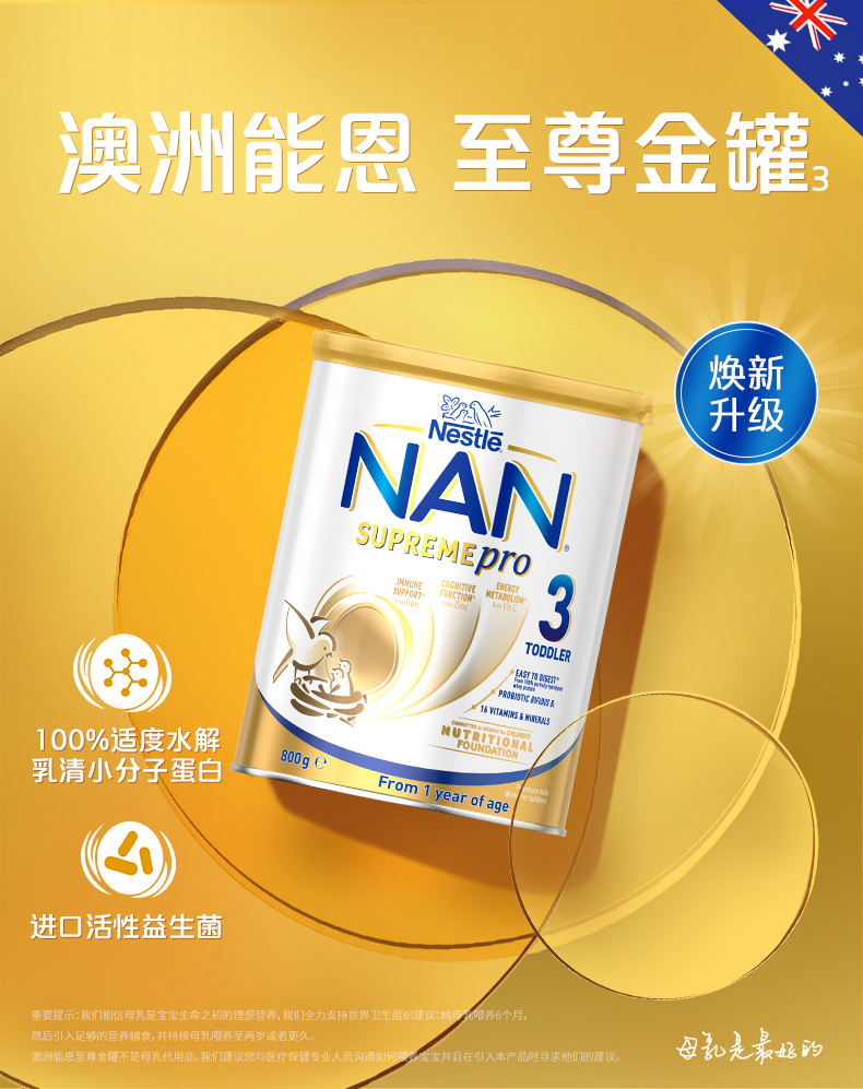 商品名称:【自营】澳洲雀巢超级能恩3段适度水解蛋白益生菌低敏奶粉800g*6