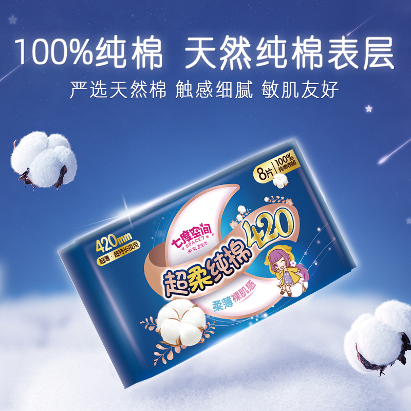 商品名称:七度空间少女纯棉超薄卫生巾超长夜用安心超熟睡姨妈巾420mm28片