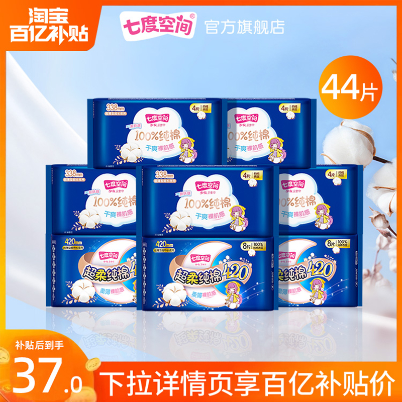 商品简介:【详情页5元直播间红包,点击跳转百亿直播间下单19.9元到手28片】七度空间少女纯棉超薄卫生巾,长夜用安心超熟睡姨妈巾420mm28片!