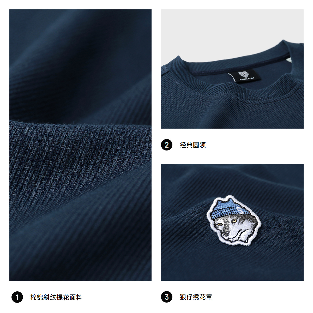 商品名称:七匹狼男装卫衣圆领套头刺绣弹力秋季新款休闲长袖T恤上衣男