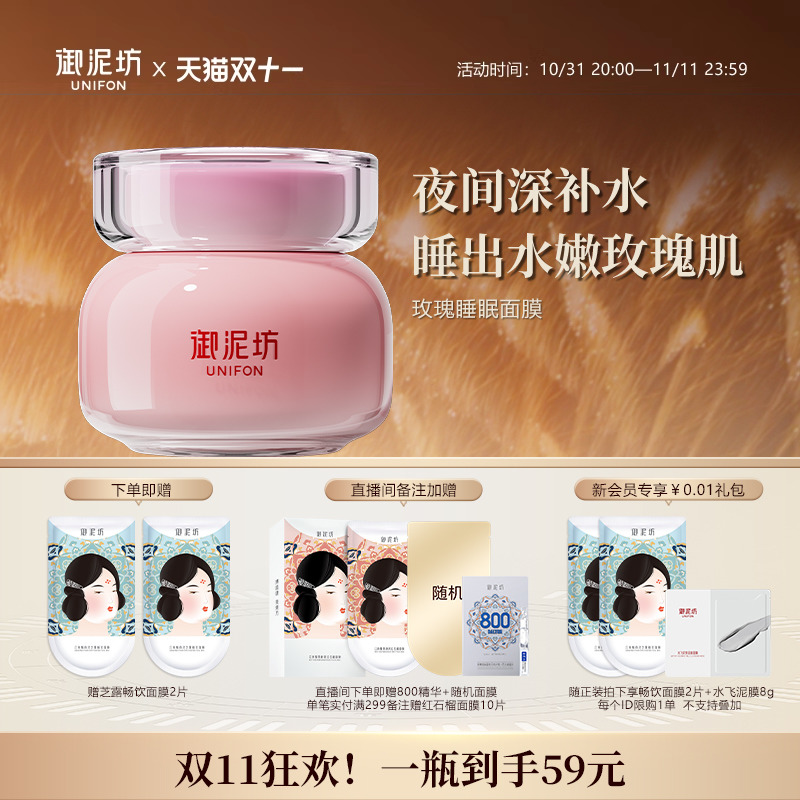 商品名称:【双11狂欢开抢】御泥坊玫瑰睡眠面膜玻尿酸补水保湿面膜女正品