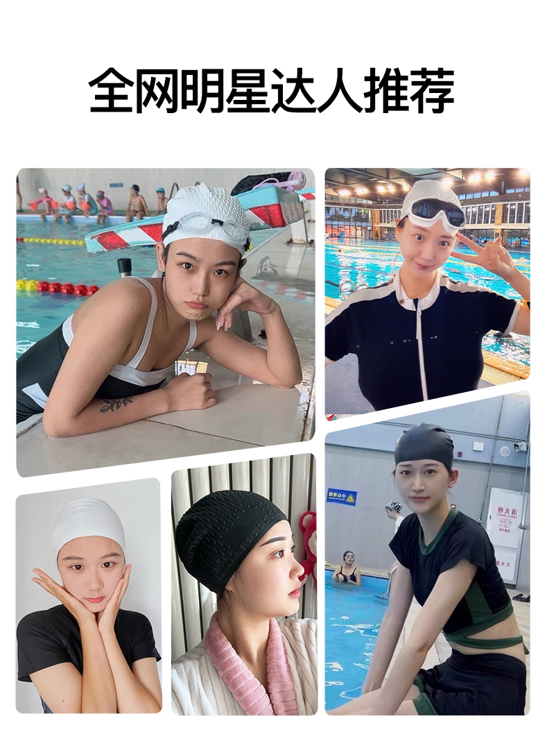 商品简介:选用柔软高弹硅胶,裸感贴合头部,不勒头!防水抗氯不伤头发,内里防滑,环保亲肤无异味!!适合各种头型,男女通用!!