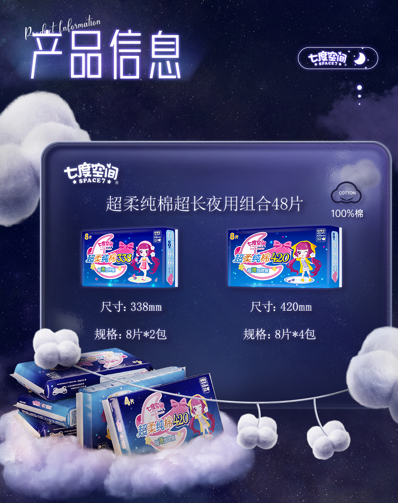 商品介绍:【七度空间】超薄420+338夜用卫生巾共48片