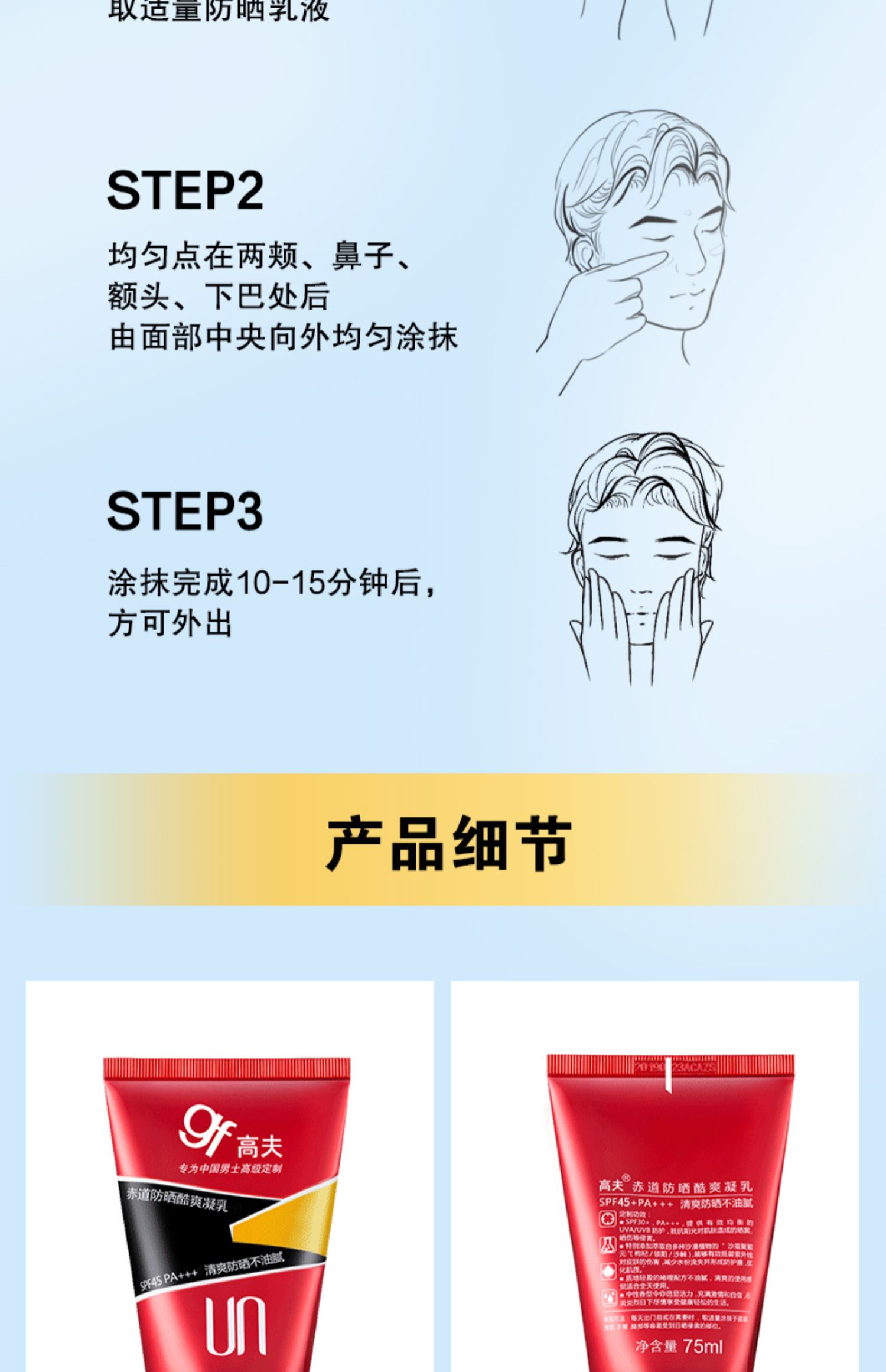 商品介绍:【双11提前抢】高夫男士防晒霜防晒凝乳