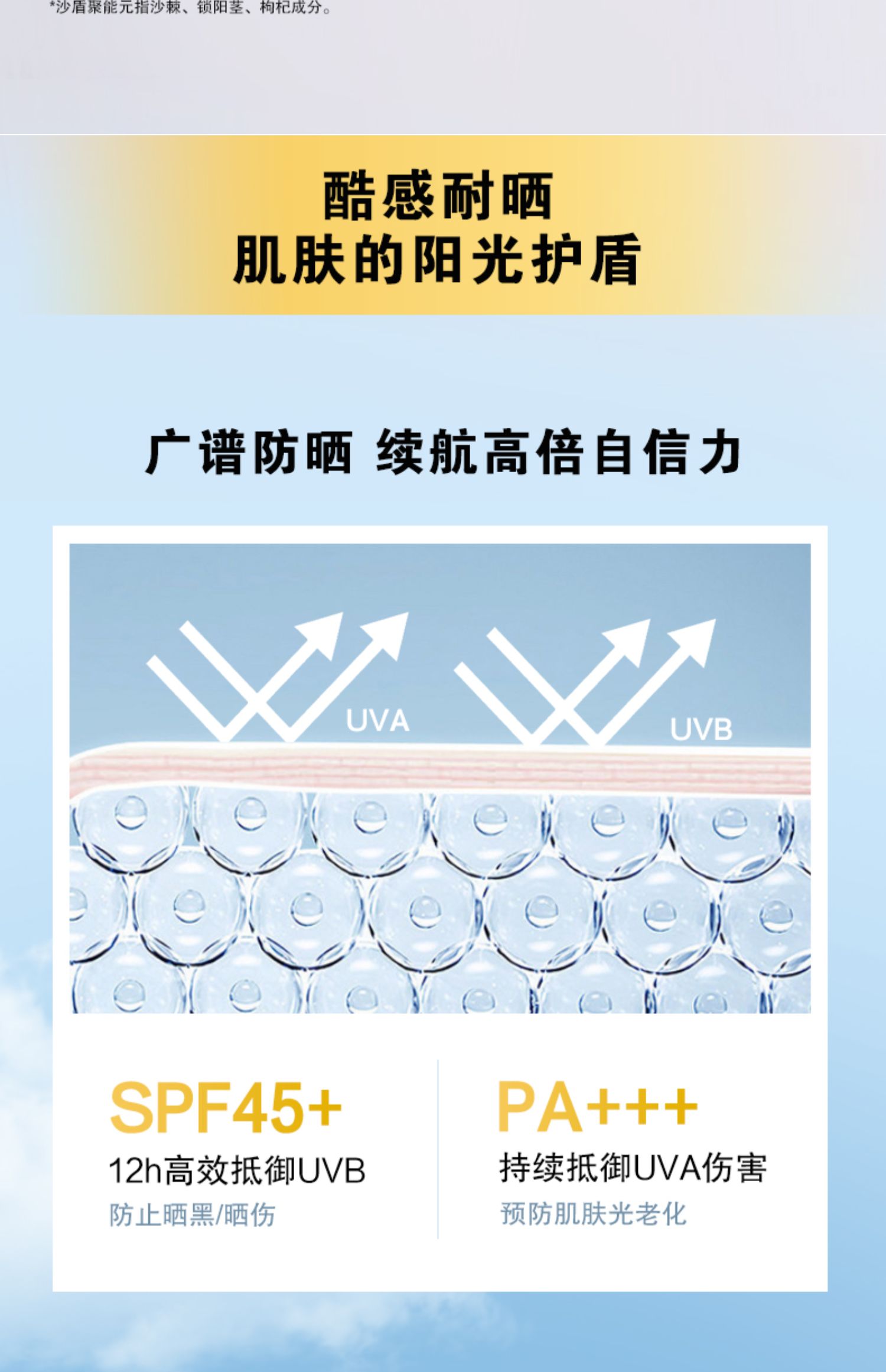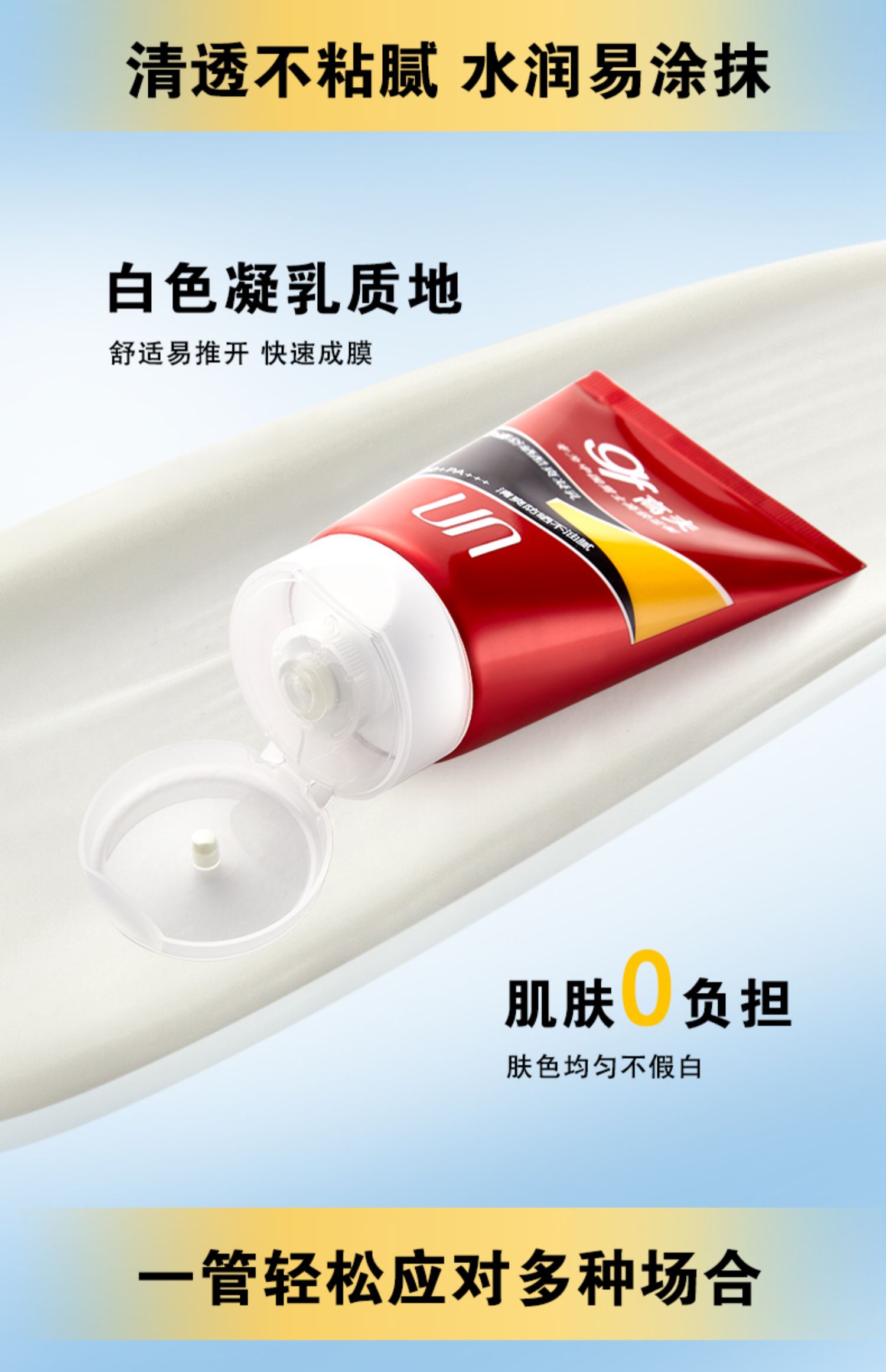 商品简介:专为男性设计!流汗不流白汤SPF45+PA+++15小时高效防晒!一整天都不怕晒黑!清爽肤感质地,不会堵塞毛孔,轻松卸!肌肤均匀不假白,防晒0负担!