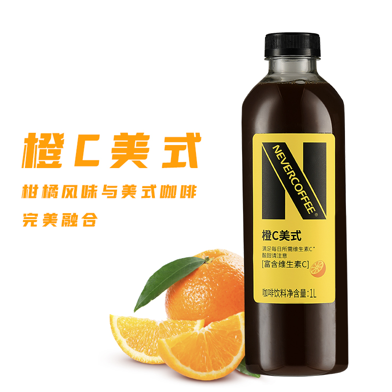 商品介绍:NeverCoffee无糖黑咖啡橙C美式大容量1L*2