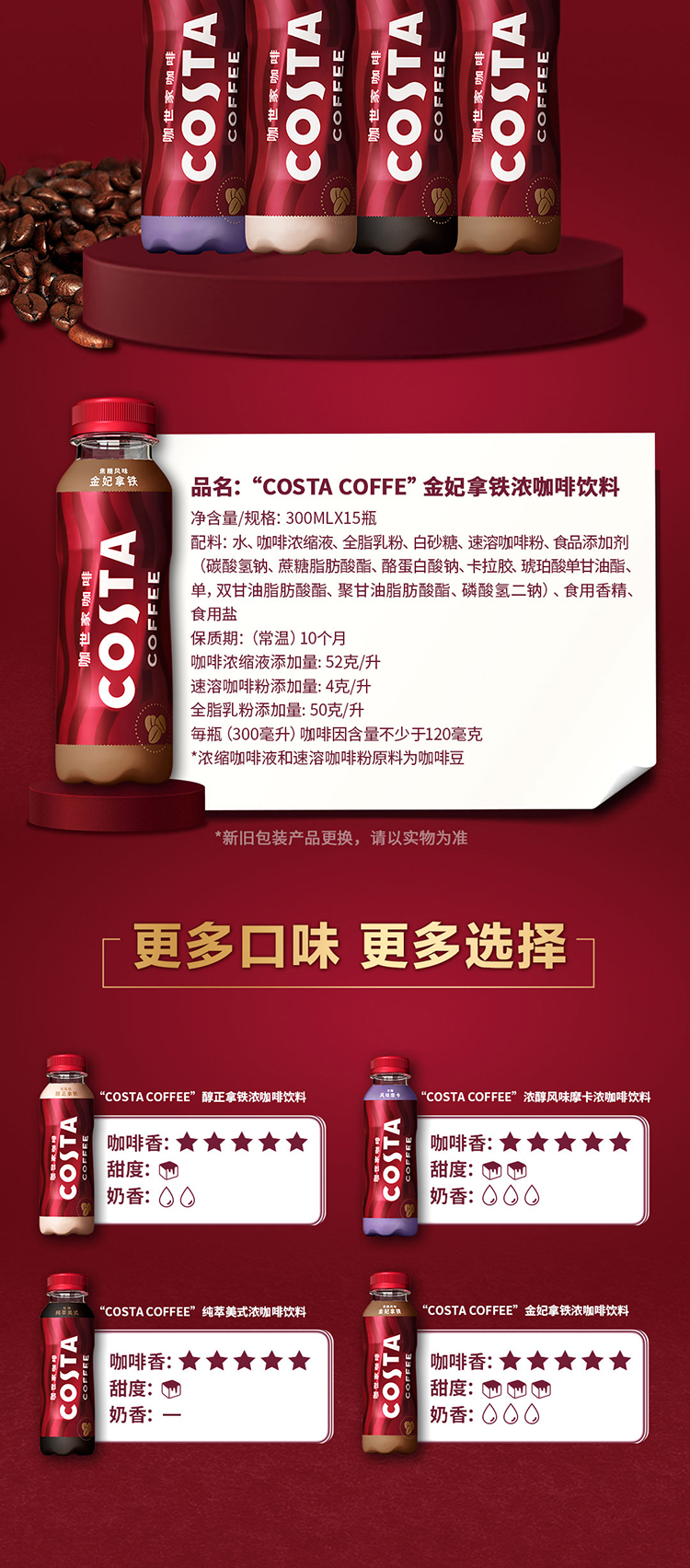 商品名称:可口可乐COSTA咖世家金妃拿铁浓咖啡300MLx15瓶整箱即饮咖啡饮料