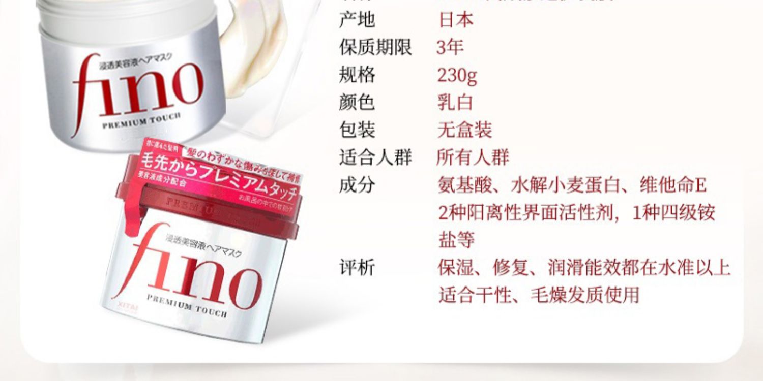 商品介绍:【凑单60.6】资生堂fino浸透发膜230g*2罐