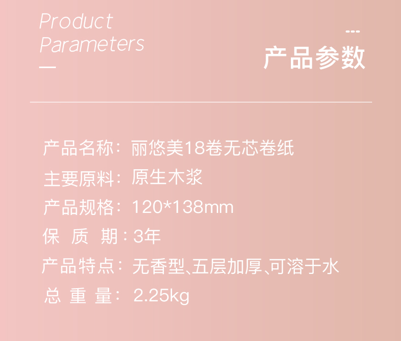 商品名称:丽悠美卷纸18大卷5层加厚卫生纸母婴家用实惠装厕纸无芯卷筒纸