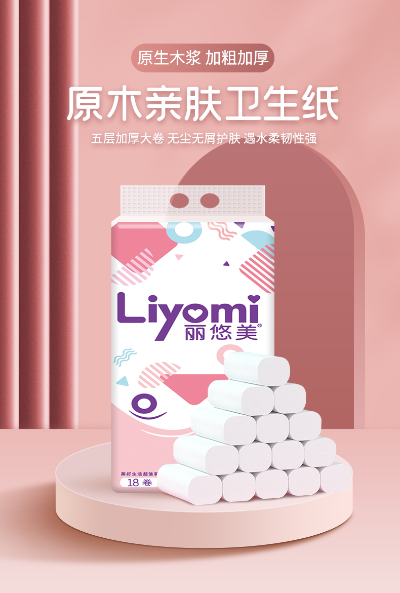 商品介绍:【丽悠美】加厚原生浆卫生卷纸18卷