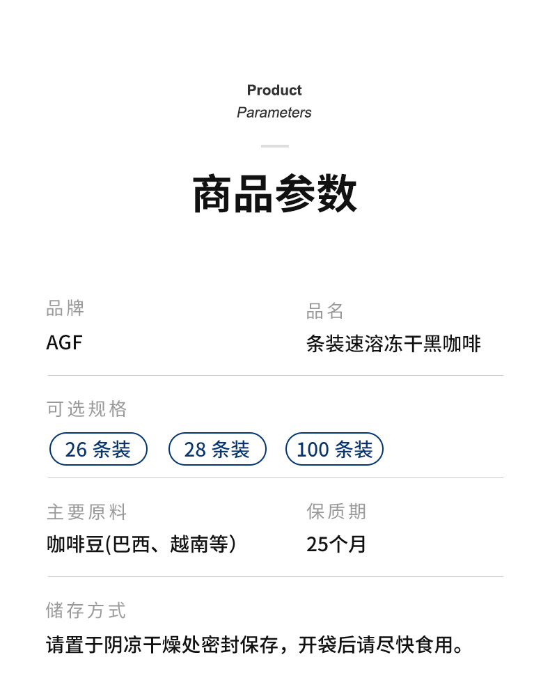 商品名称:【自营】日本AGF咖啡美式进口黑咖啡无糖速溶咖啡条装冻干咖啡粉