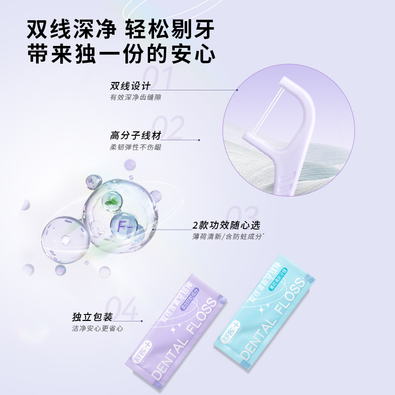 商品介绍:舒客双线牙线棒独立包装牙线极细家庭