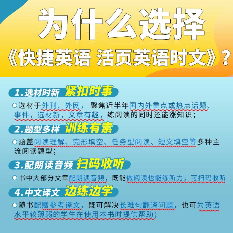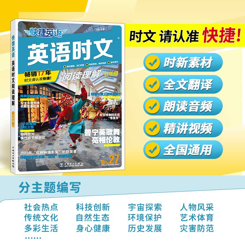 商品简介:【淘金币抵扣1.98】【可签到】2024新版27期活页快捷英语时文阅读,小升初-高考,特、高级教师推荐!关注热点,选材新颖,全文翻译,有声朗读,精讲视频,答案详解,紧扣时事,训练有素,边练边学!时文,请认准快捷!