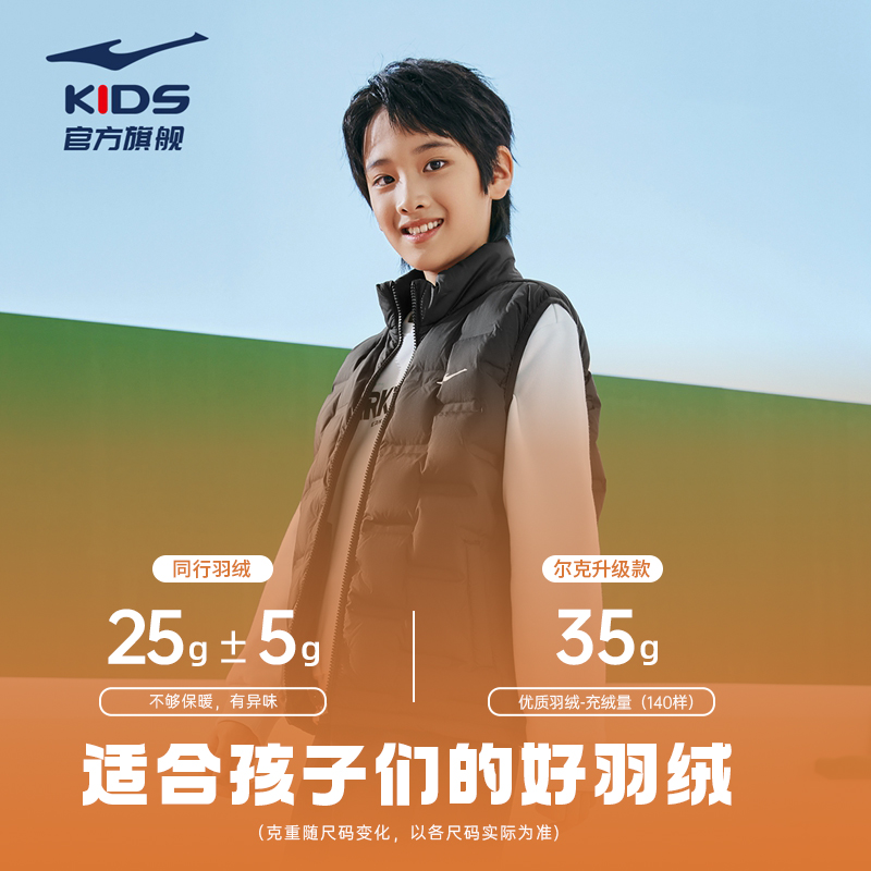 商品简介:【凑满300减50,到手99】鸿星尔克童装儿童羽绒服2024秋冬季男童轻薄保暖短款外套羽绒马甲
