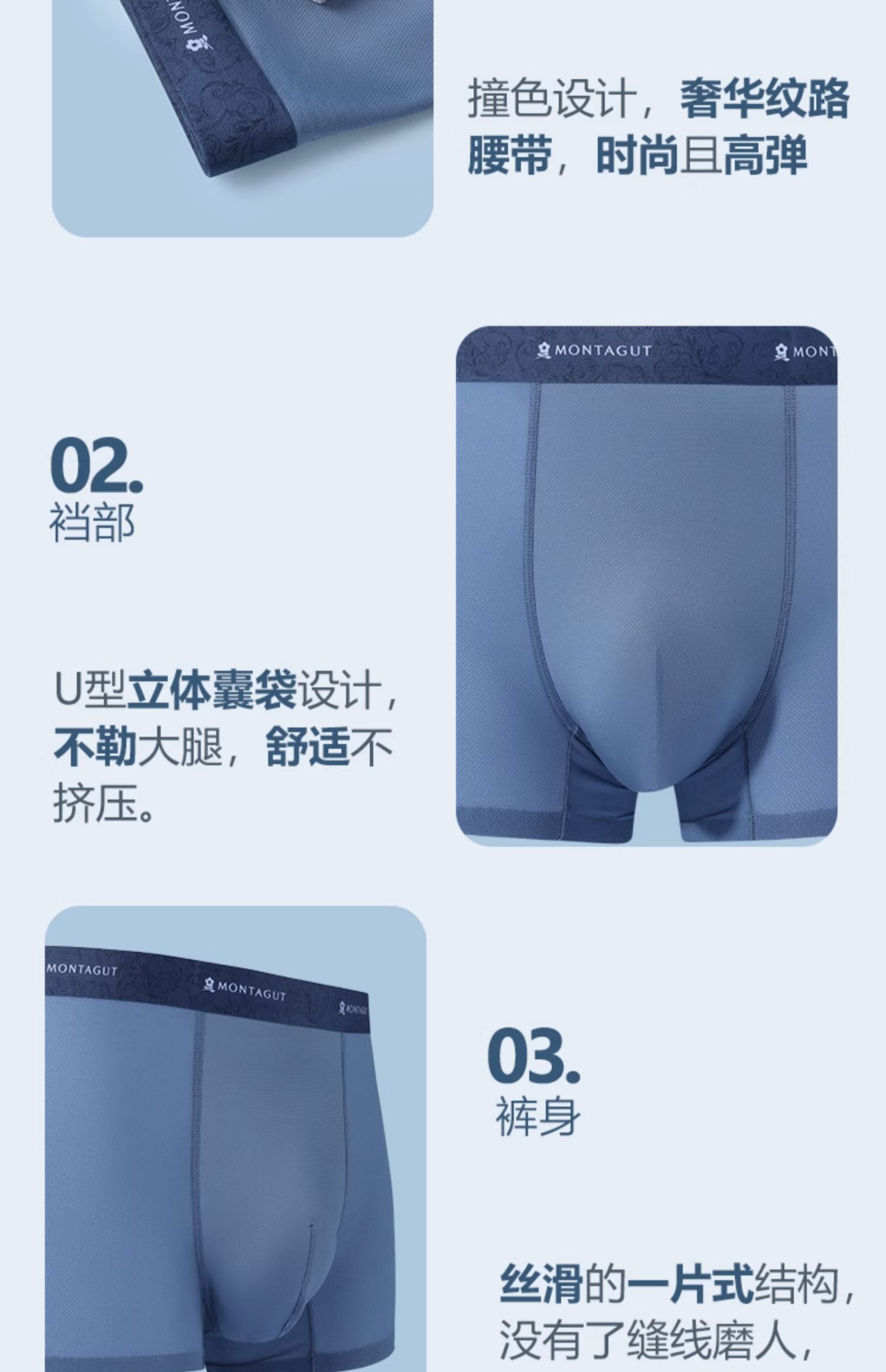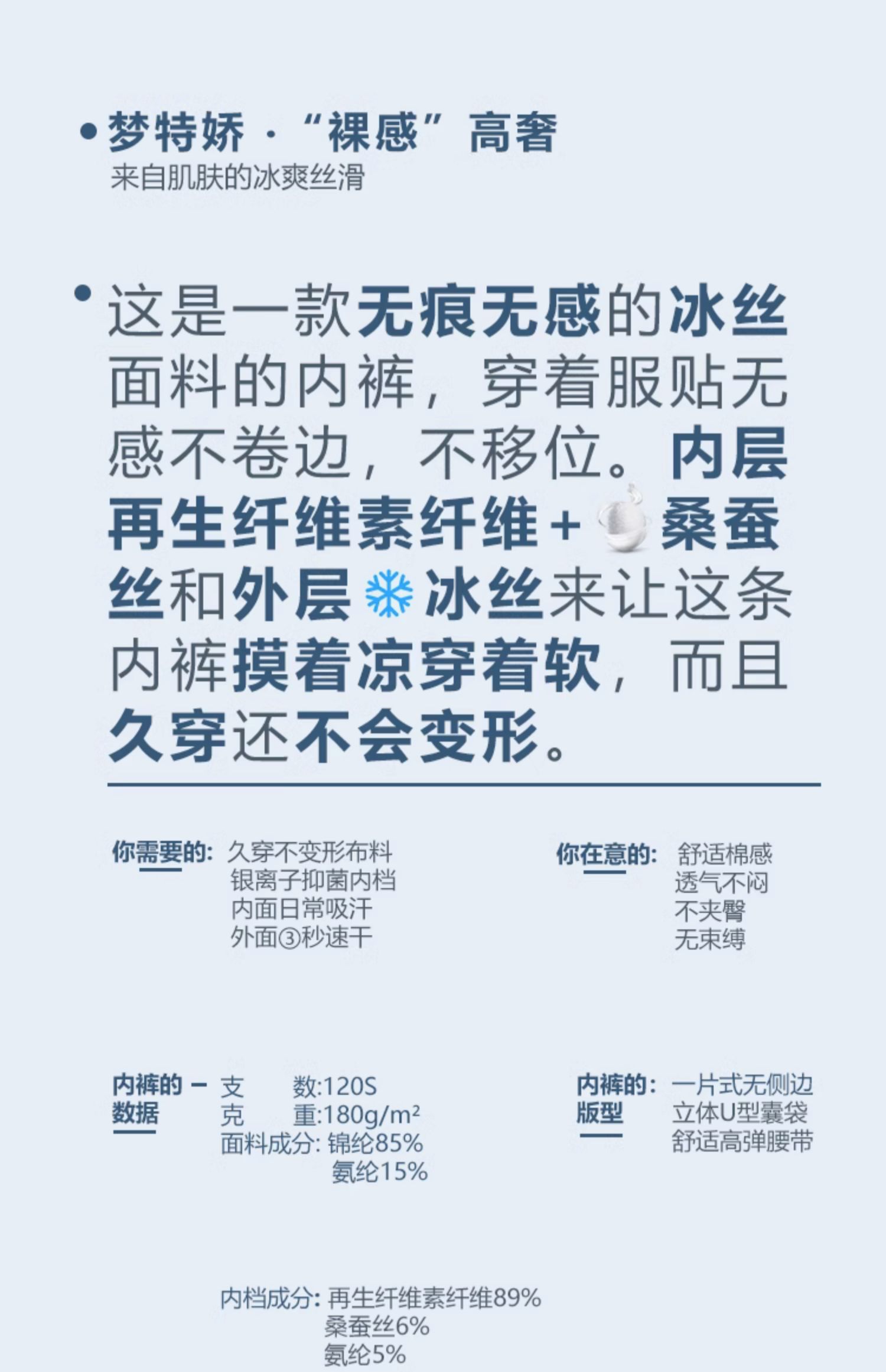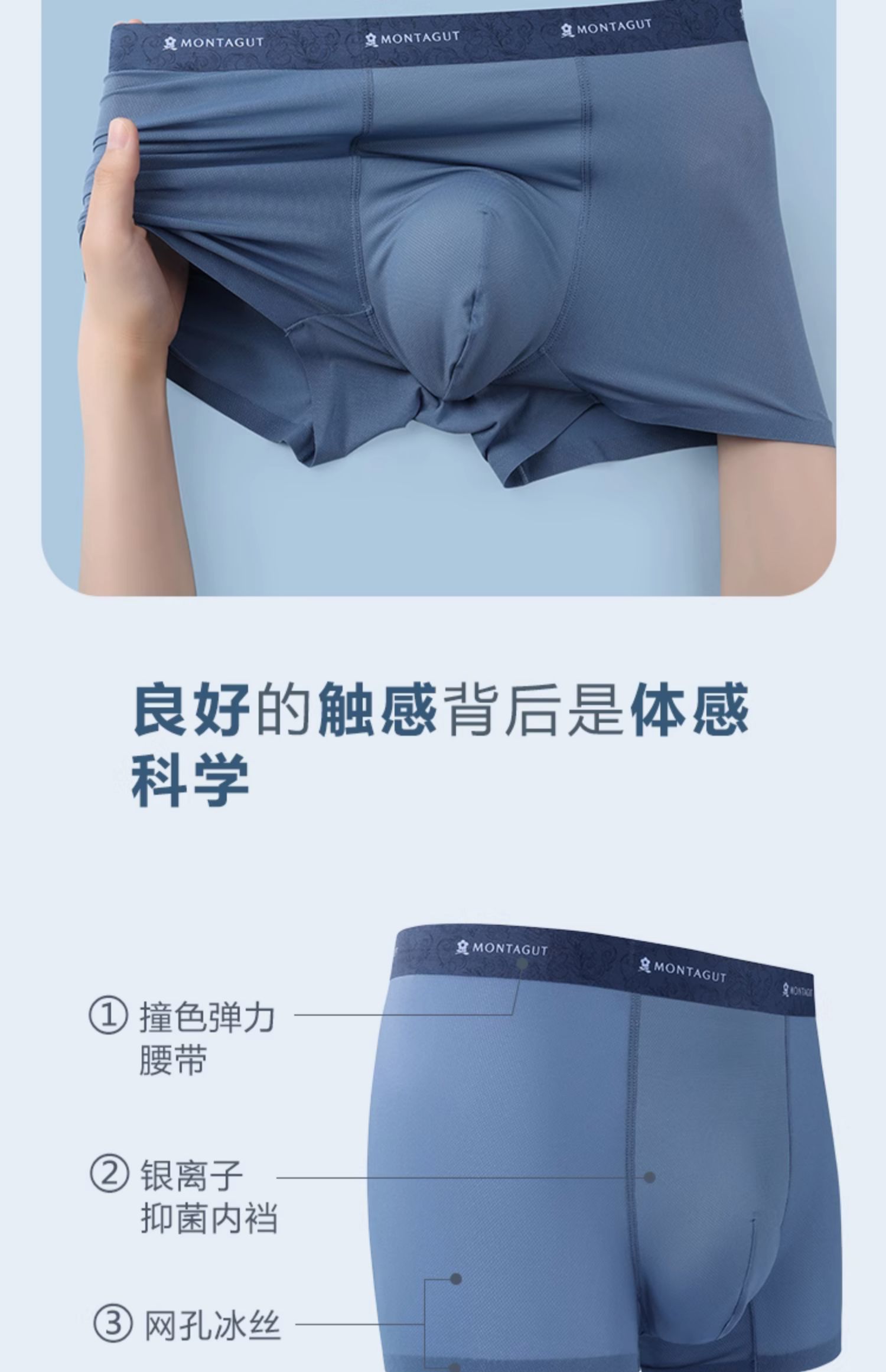商品介绍:签到!梦特娇冰丝男内裤3条礼盒装