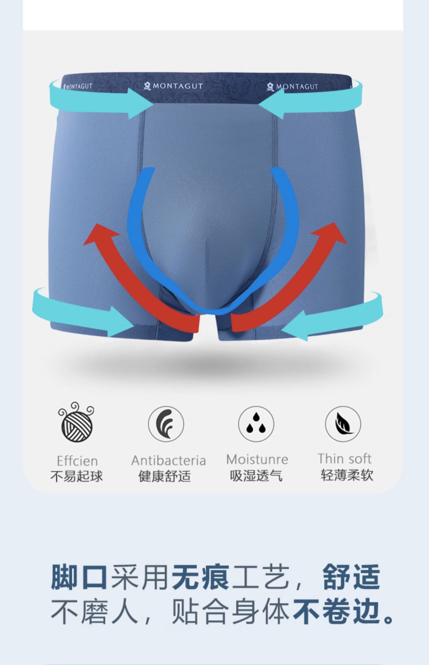 商品简介:【可用签到红包或摇现金红包,到手价更低】梦特娇品牌,男人优选,冰丝面料拒绝瘙痒闷热,AAA抗菌内档,健康透气,舒适加倍。活性印染不掉色,零感无痕,舒爽透气,无侧缝剪裁,3D立体囊袋设计,更符合男性健康标准,让您穿的更放心!【赠运费险】