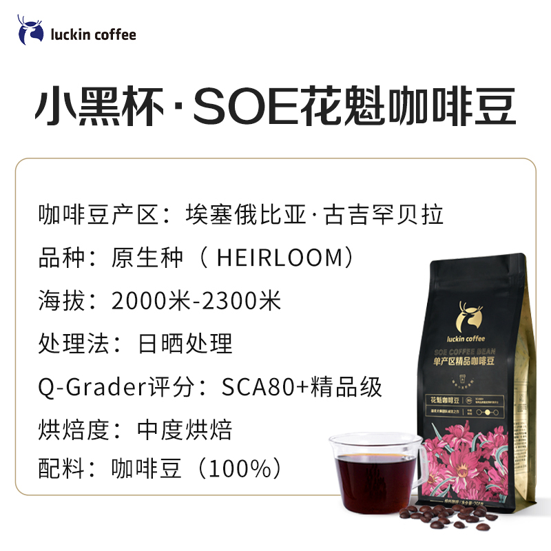 商品名称:【门店同款咖啡生豆】瑞幸咖啡埃塞俄比亚花魁咖啡豆250g中度烘焙