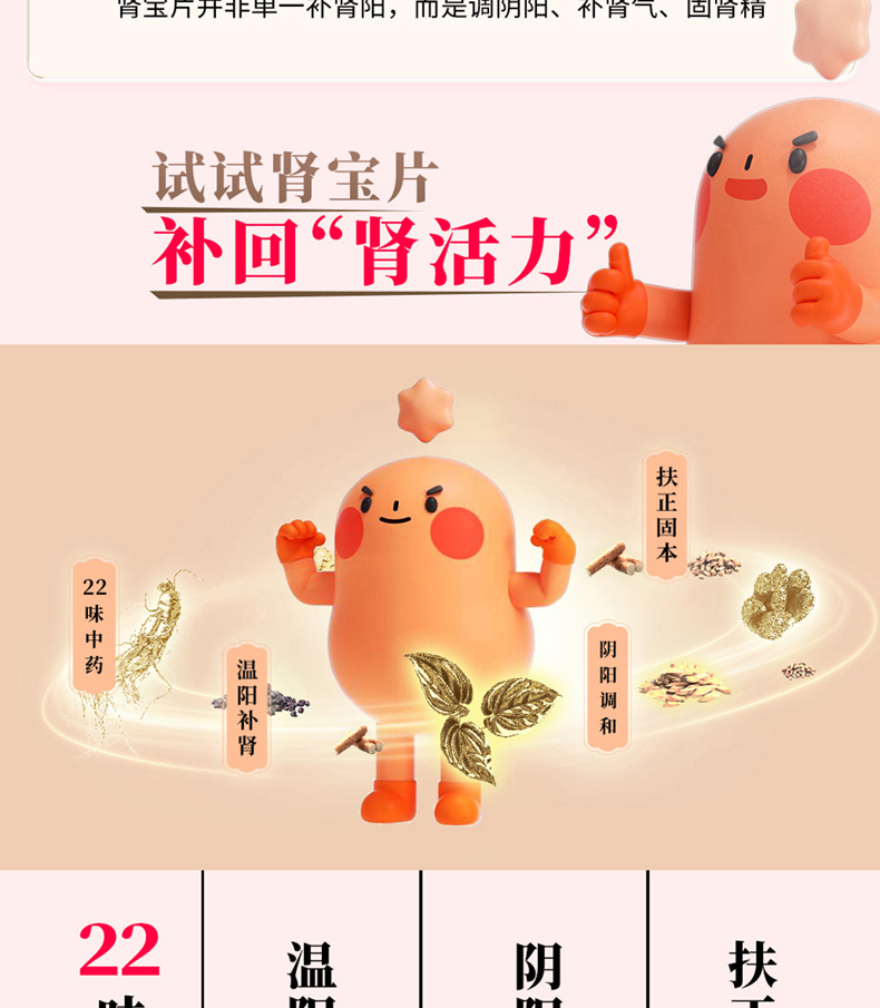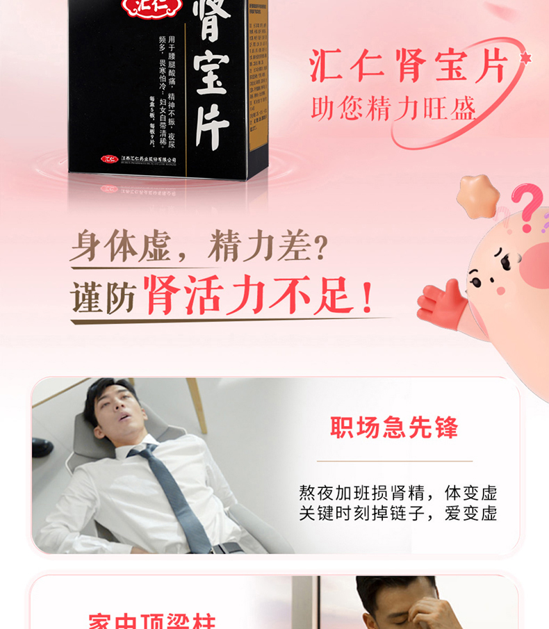 商品简介:汇仁牌肾宝片,品质保证!补调固三效合一,22味中药,专业补肾24年,温阳补肾、调和阴阳扶正固本,不再感觉身体被掏空!把肾透支的补起来,他好我也好【赠运费险】