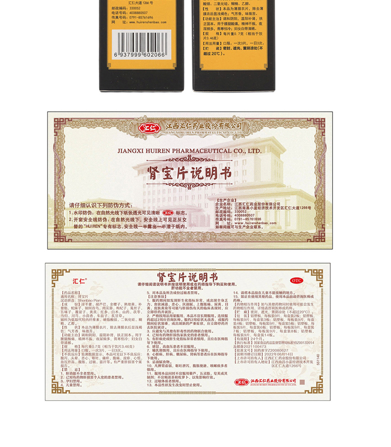 商品介绍:【1盒*45片】汇仁肾宝片补肾